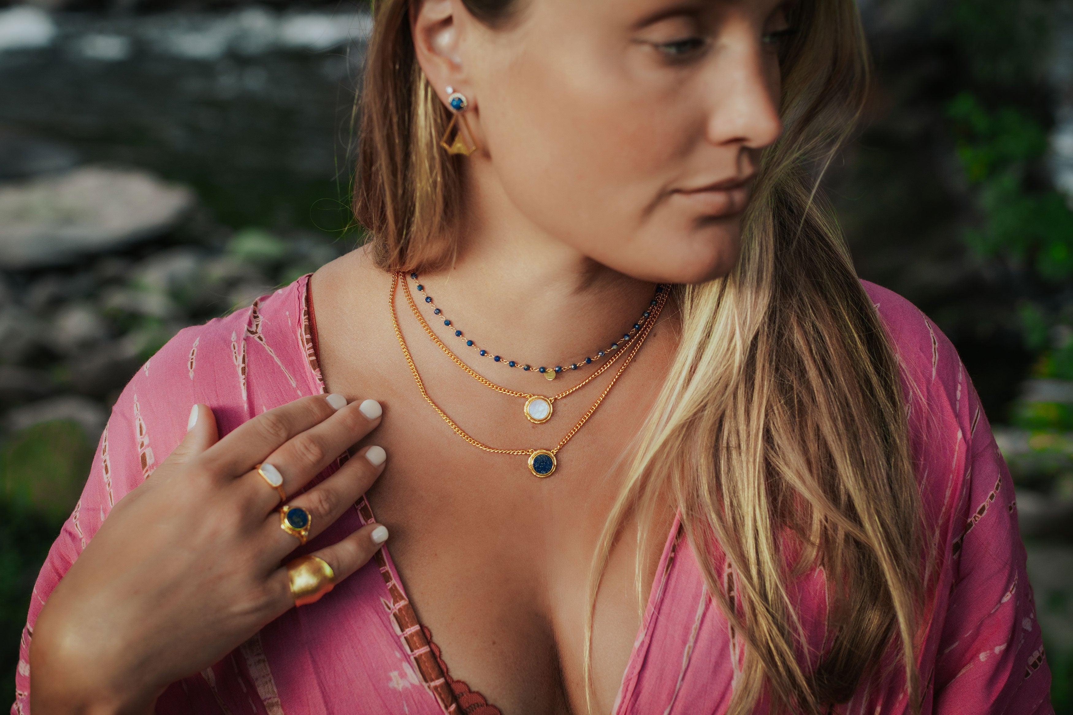 Gemma blends earthy textures with a free-spirited aesthetic to craft bohemian rings, necklaces, and earrings that carry meaning and magic.