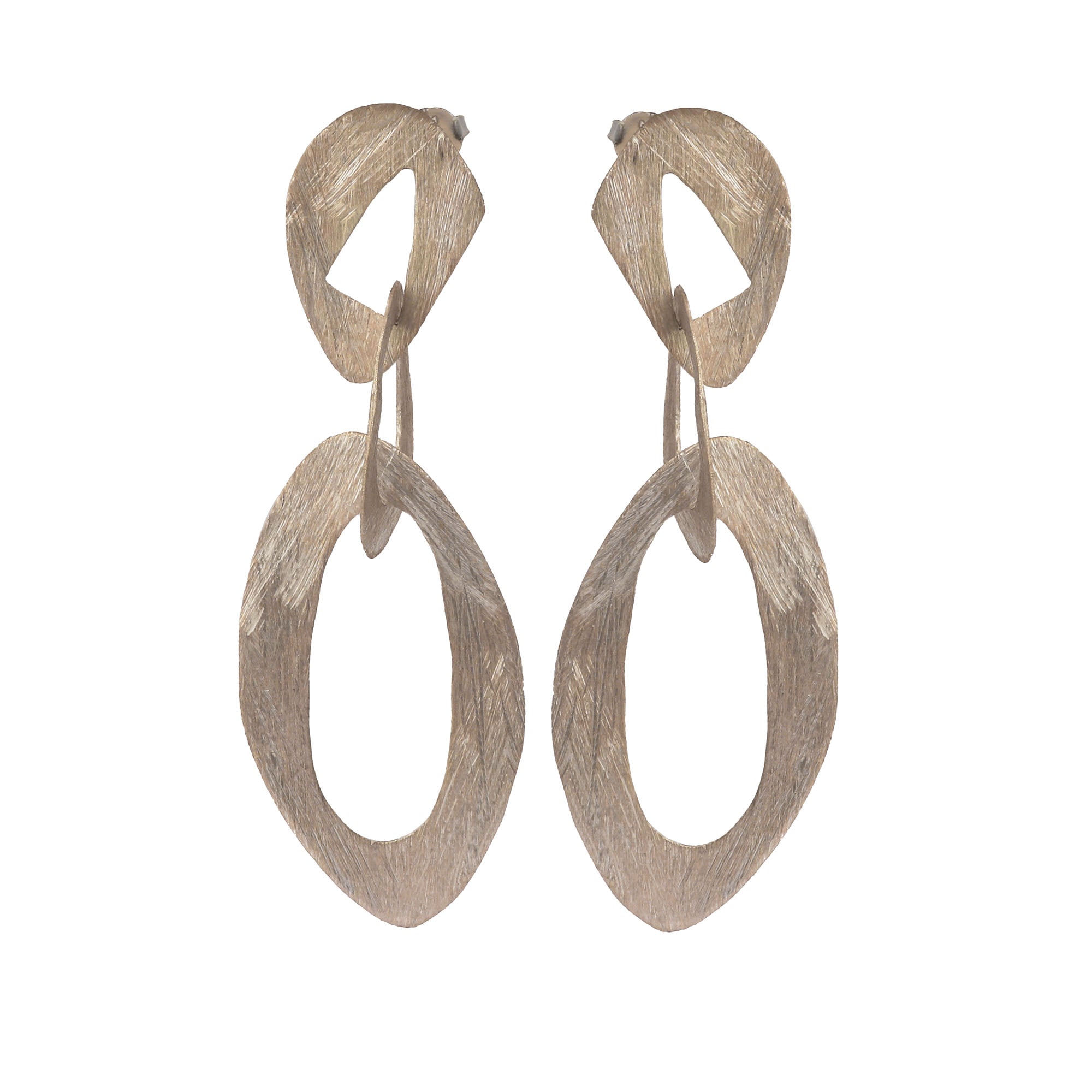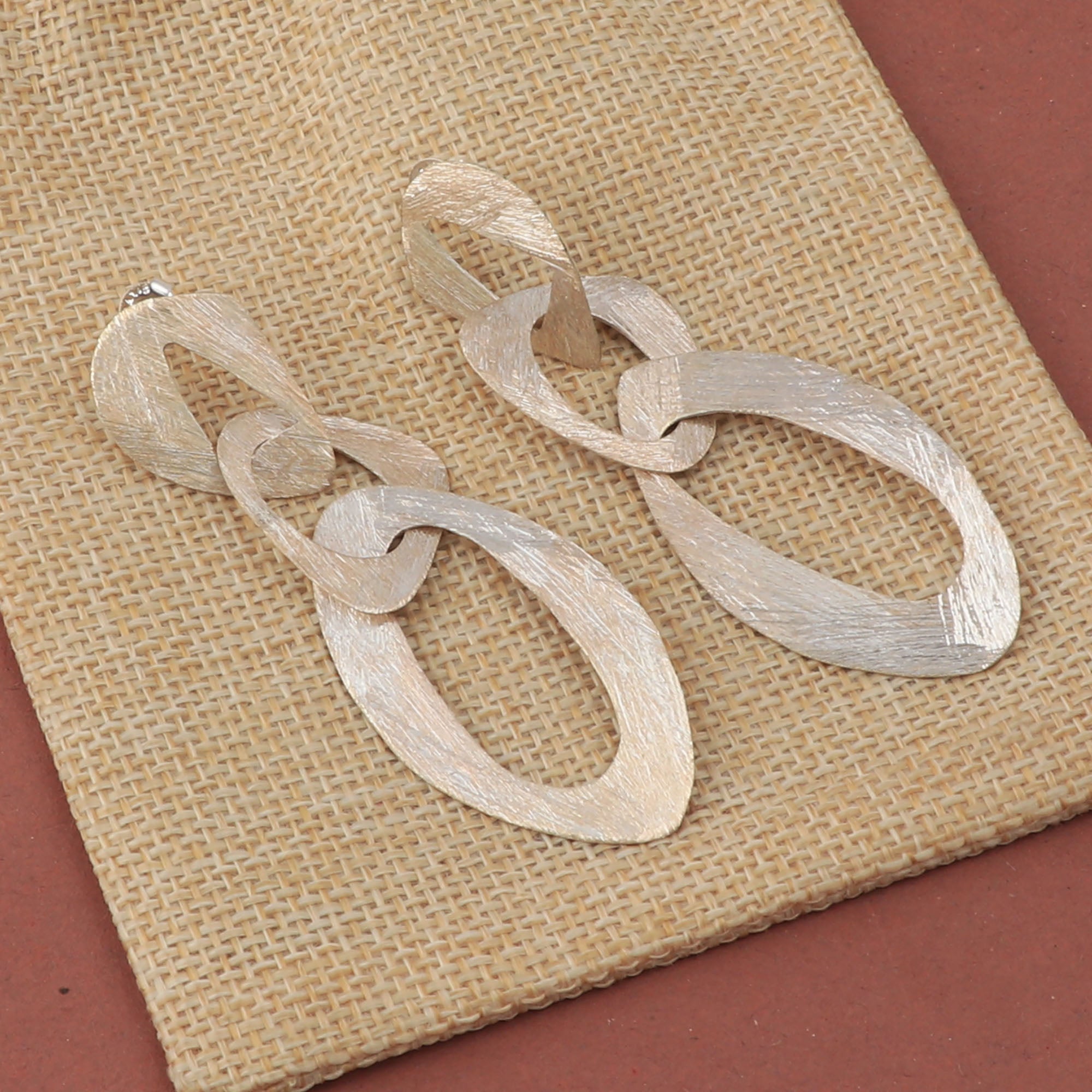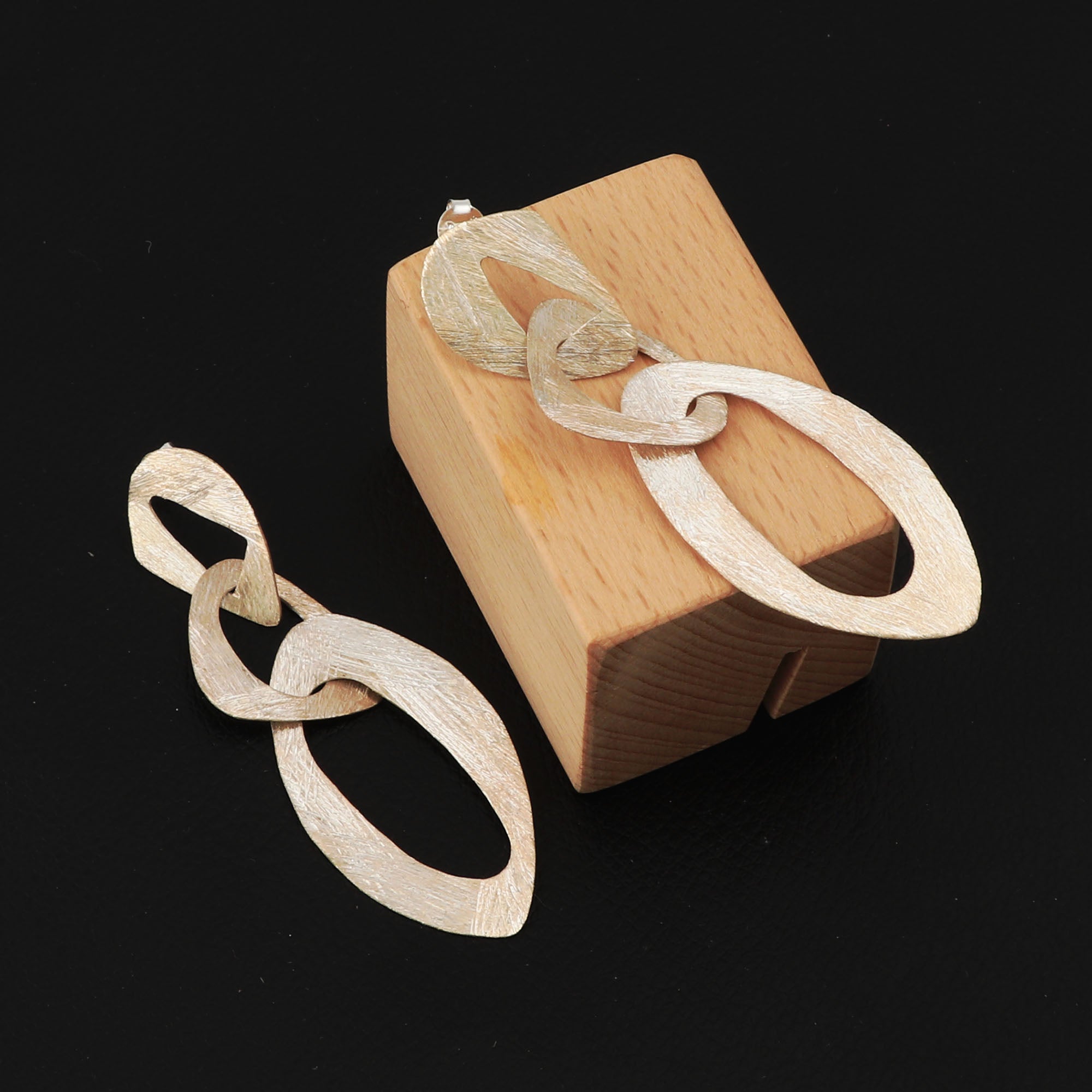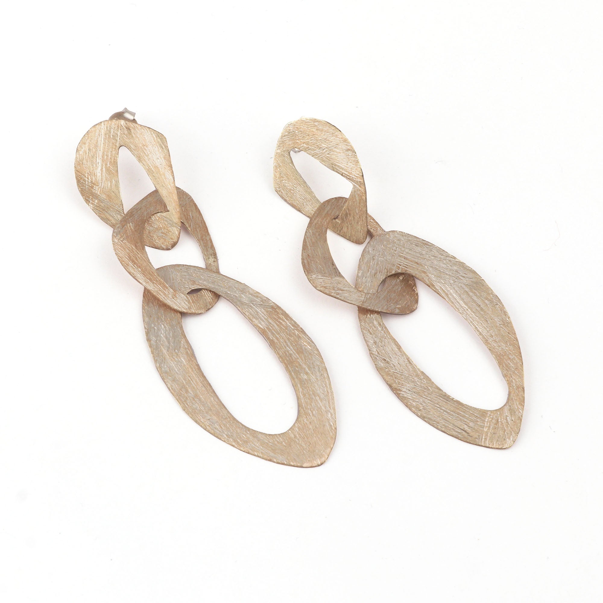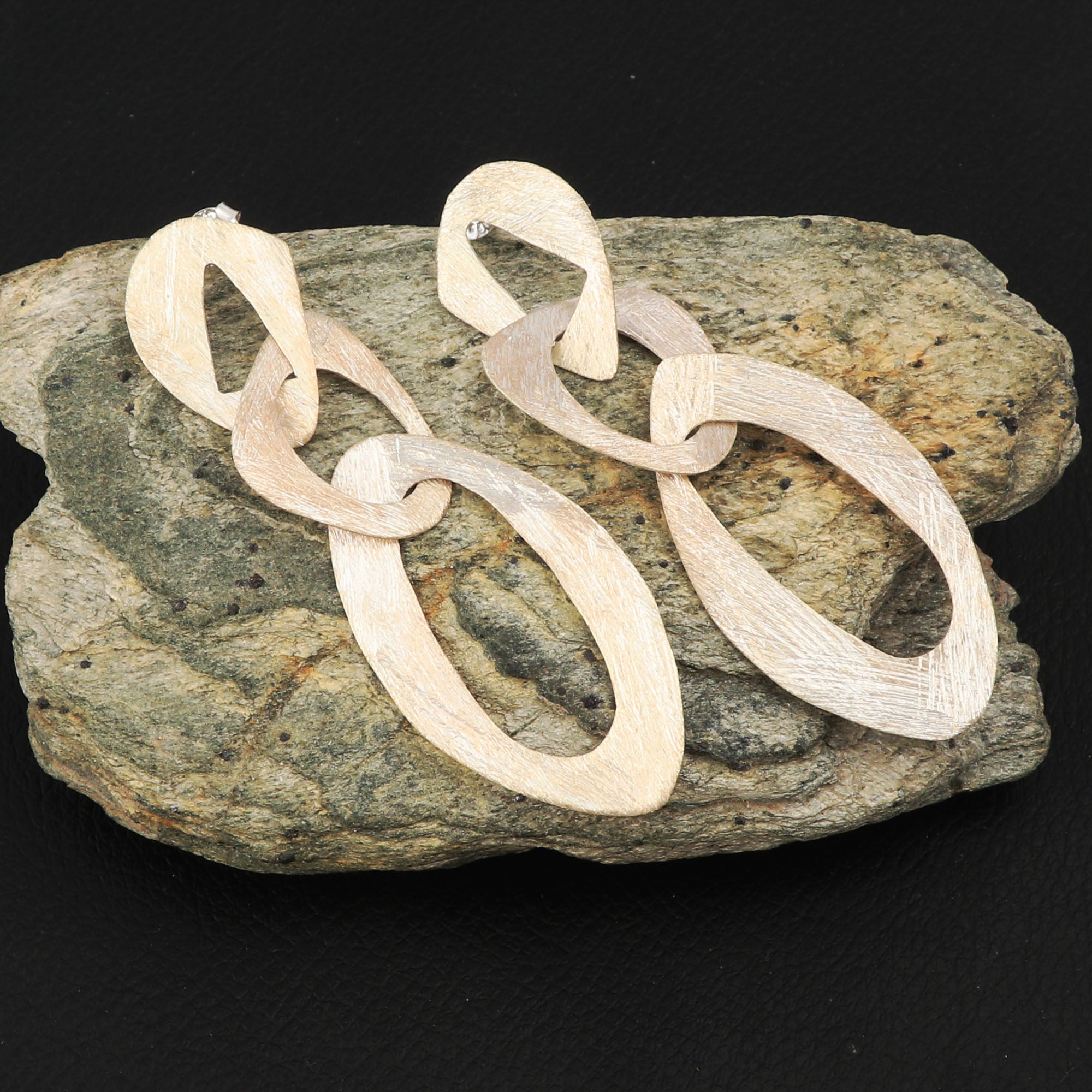 Brushed metal loops, looped on one another to provide the feel of the dancing ocean as they move.