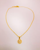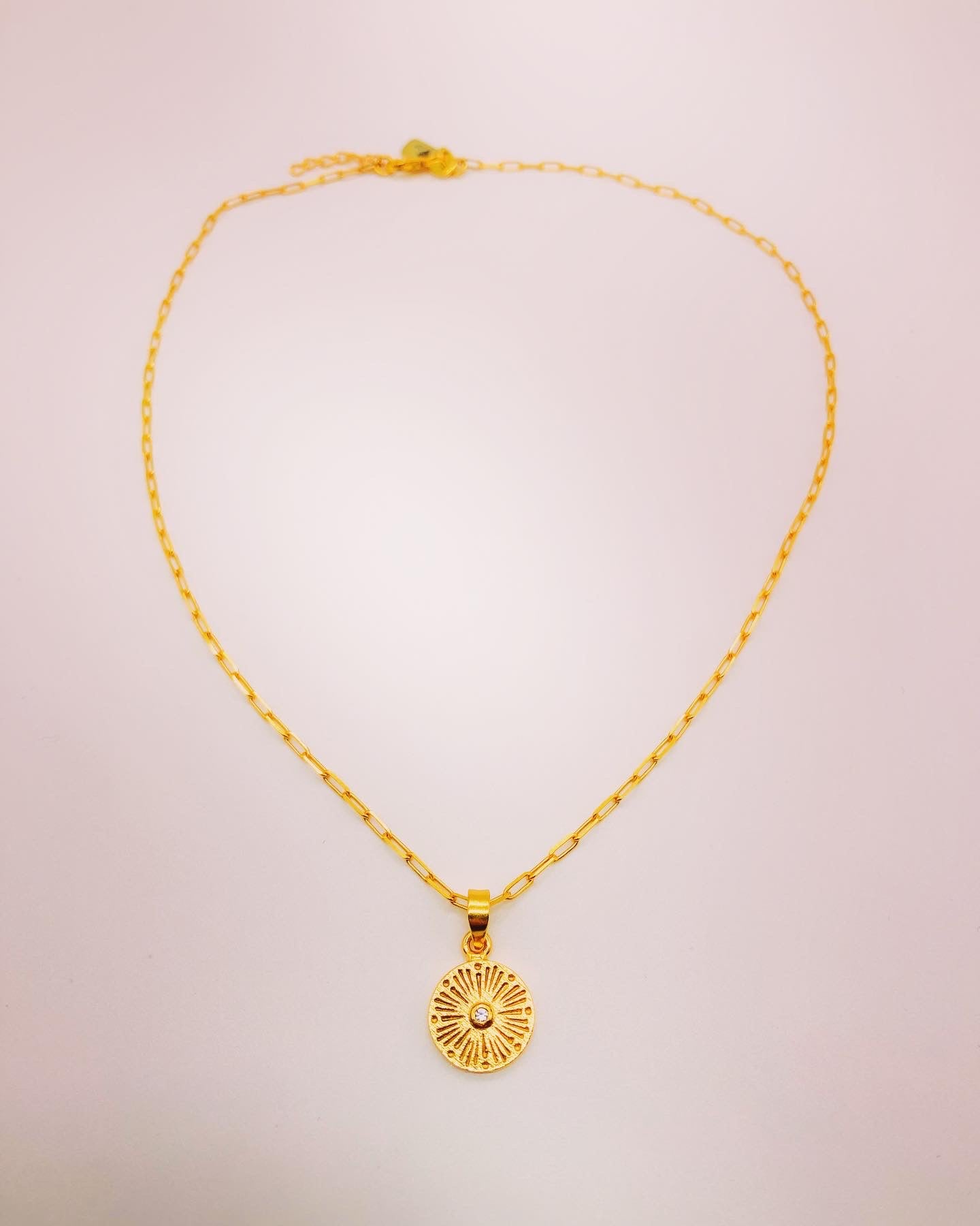 Mini Medallion Necklace with 2mm white topaz at center with etched details!