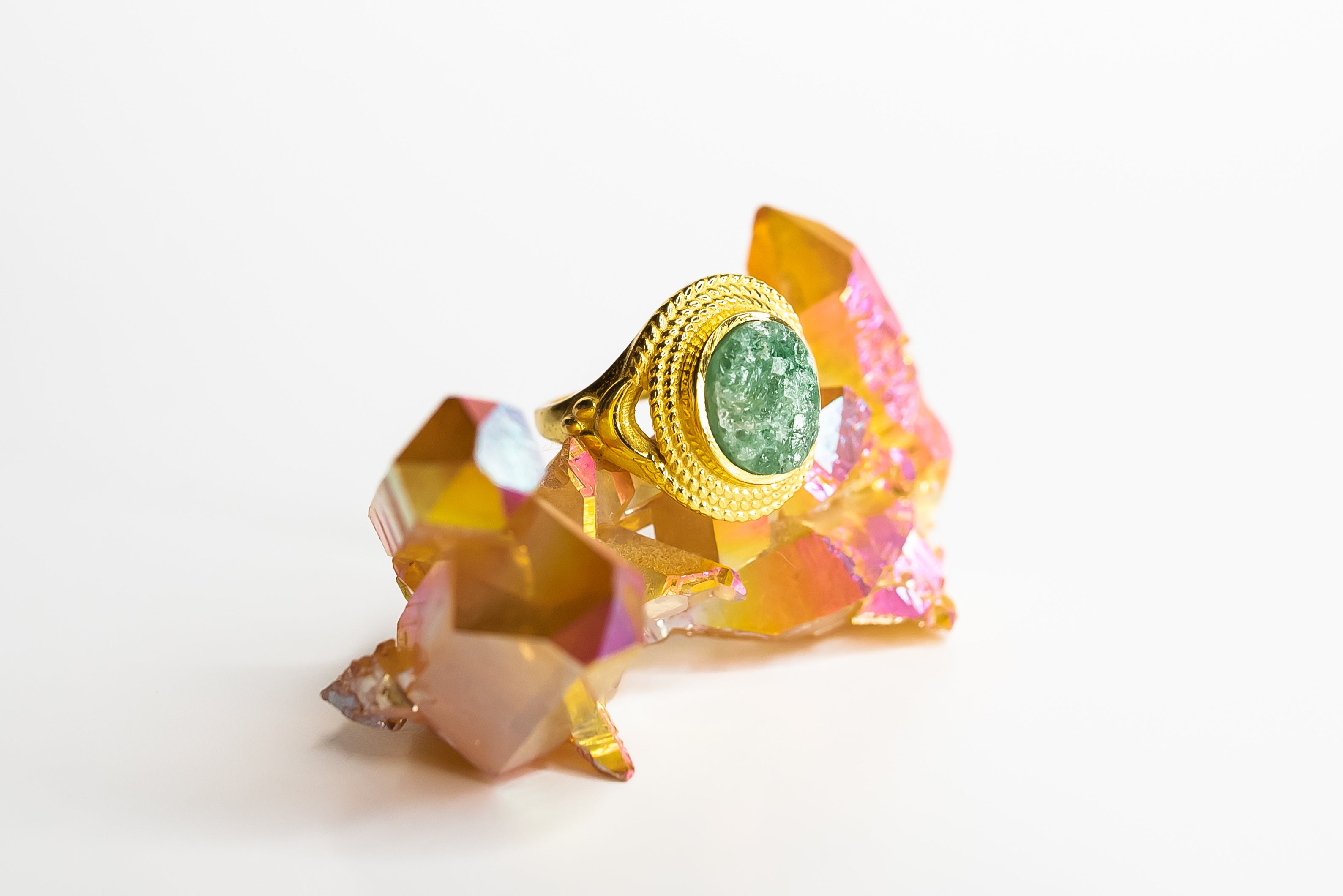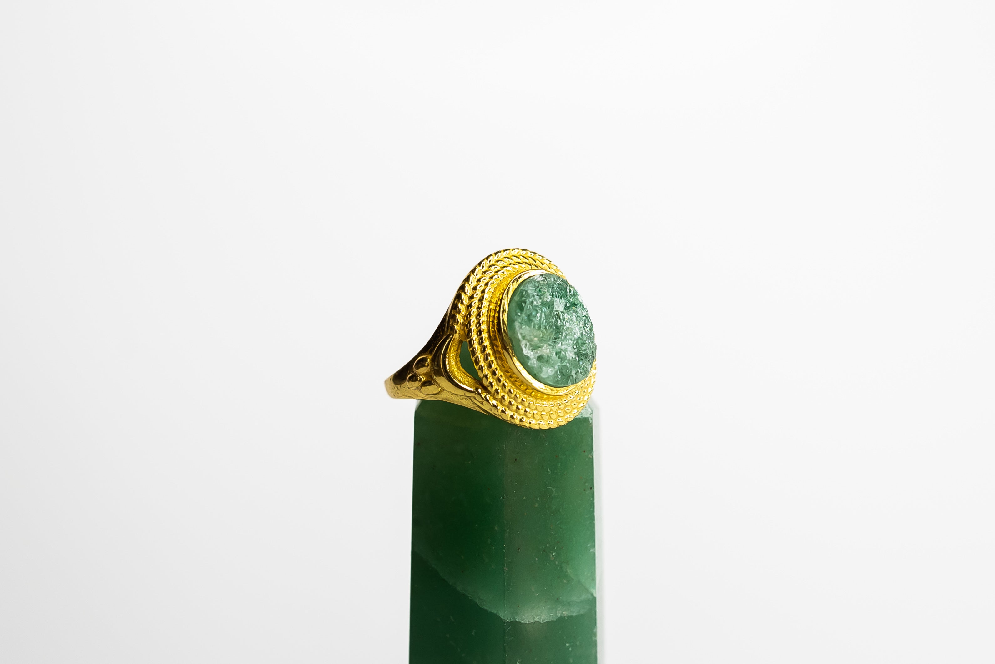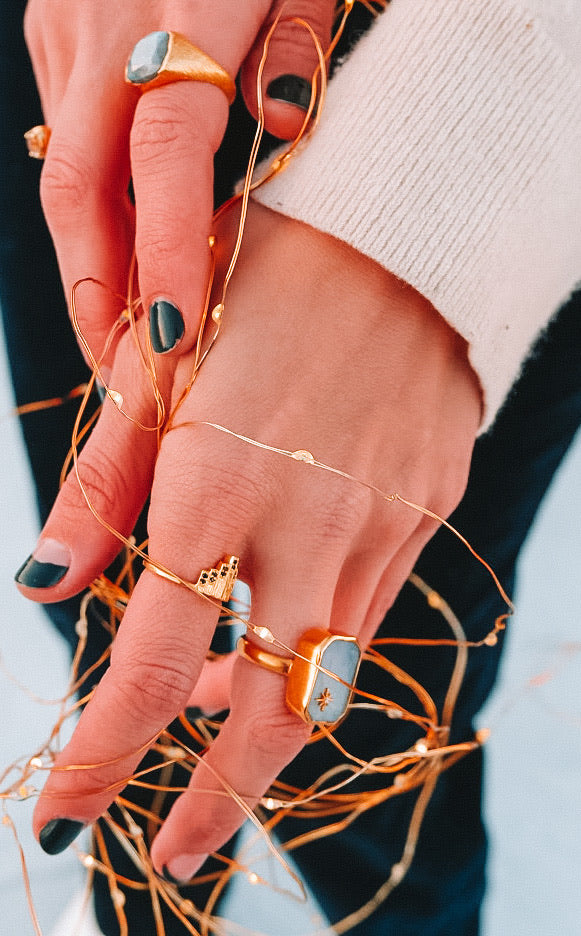 Our gold rings for women are made with high-quality brass and gold finishes, often paired with semi-precious stones and artisan detailing for a unique, earthy look.