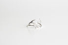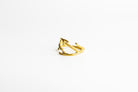 Set in 18k gold, micron plated twice over sterling silver, the antlers wrap around your finger, with an open setting. Also available in sterling silver.