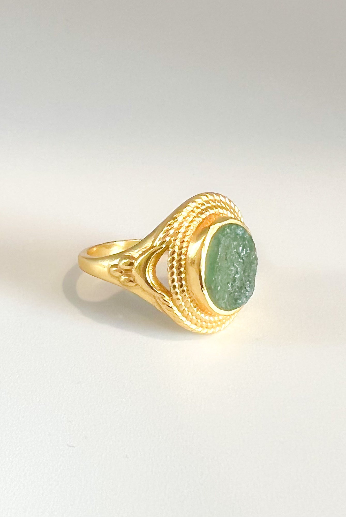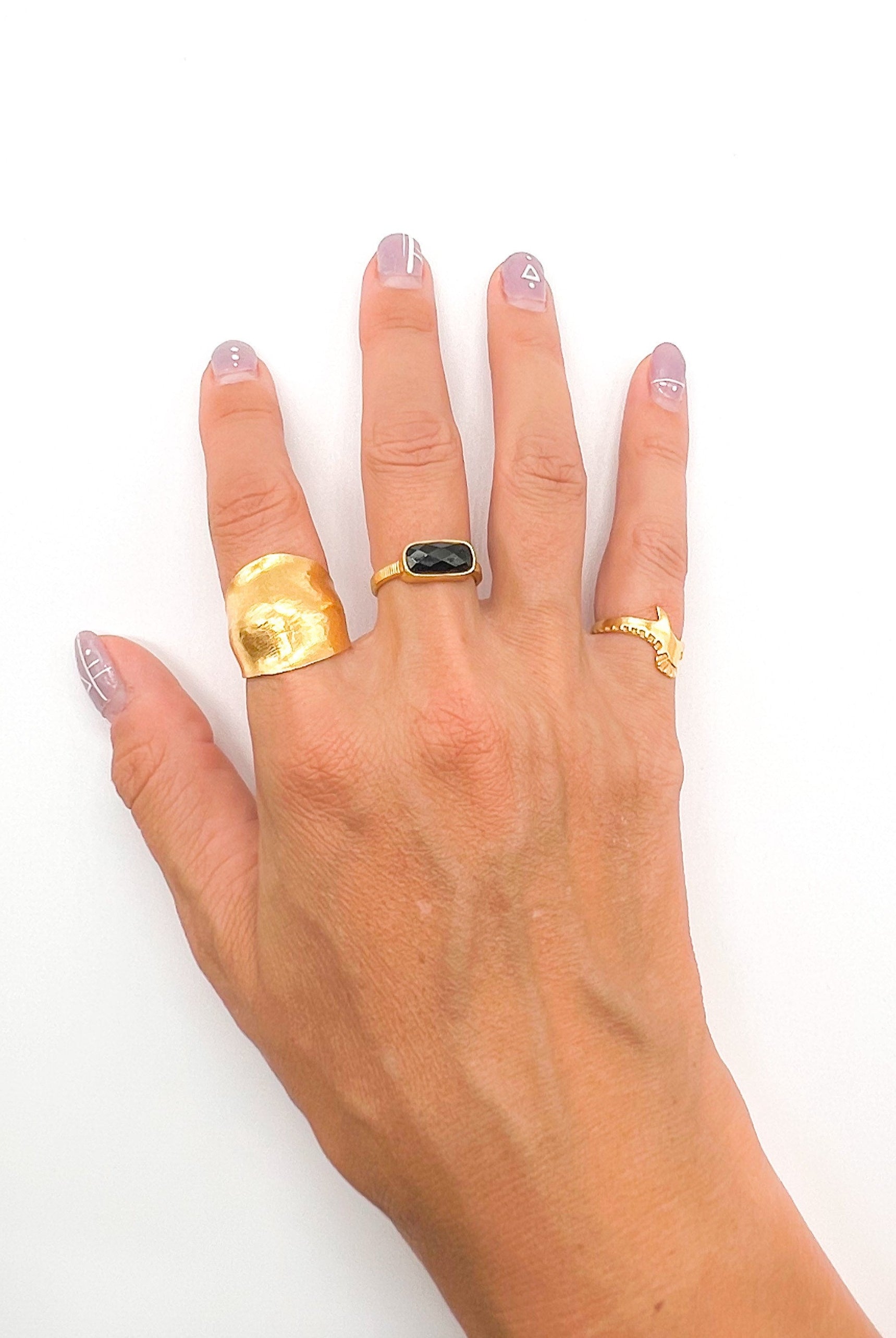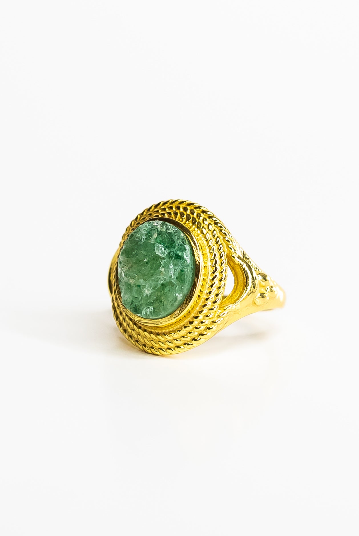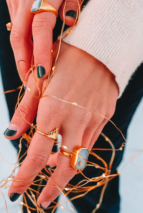Our gold rings for women are made with high-quality brass and gold finishes, often paired with semi-precious stones and artisan detailing for a unique, earthy look.