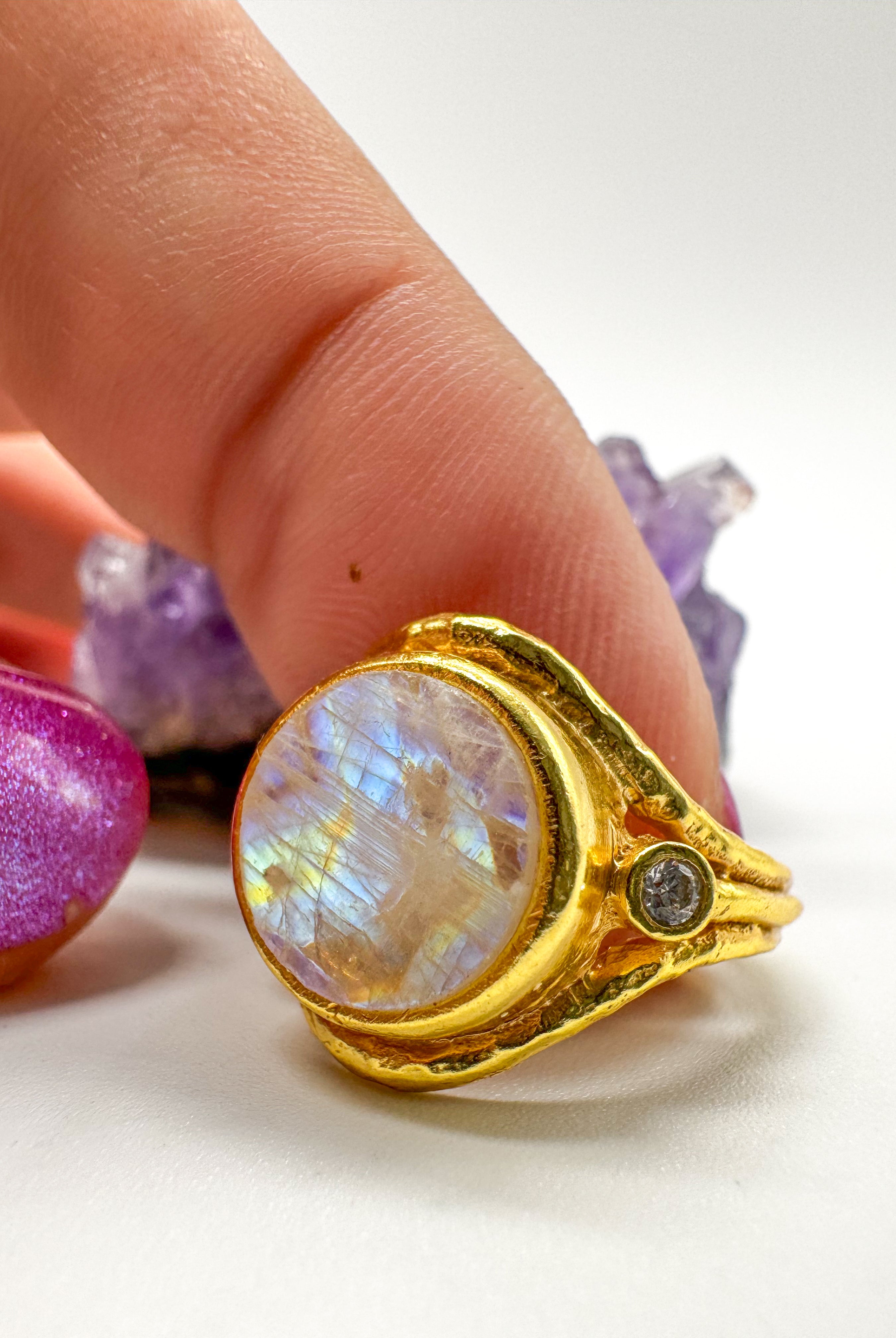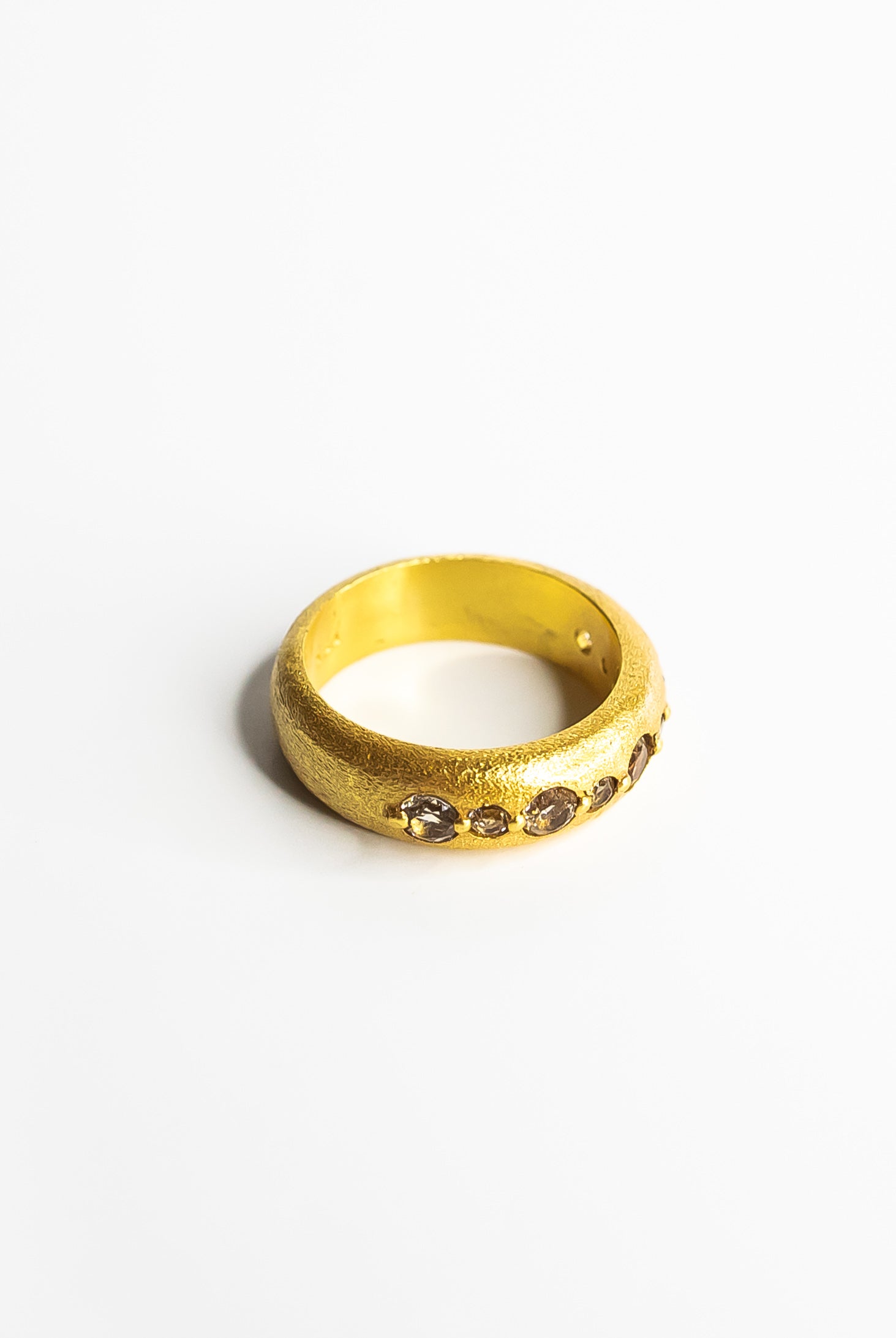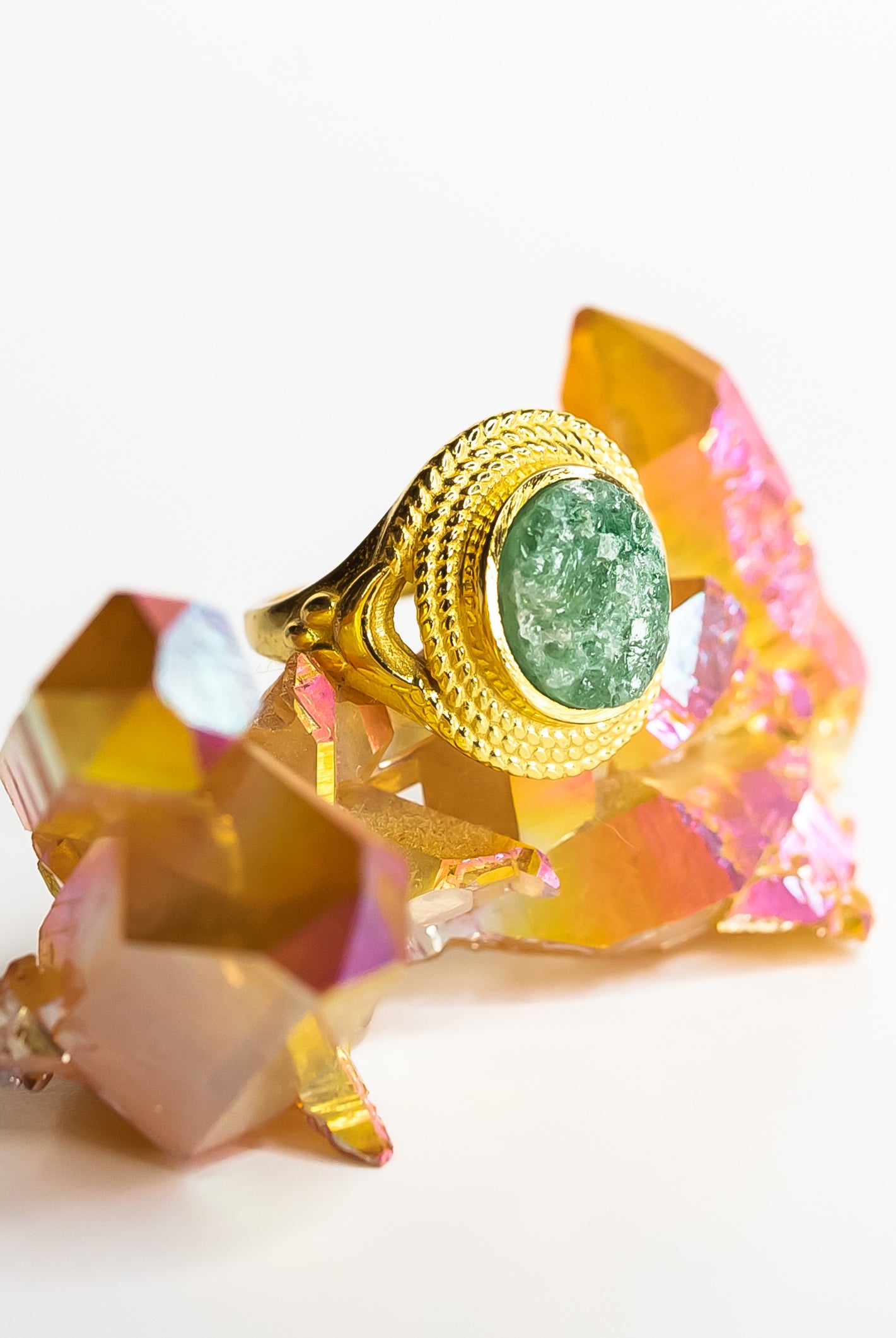 Our gold rings for women are made with high-quality brass and gold finishes, often paired with semi-precious stones and artisan detailing for a unique, earthy look.