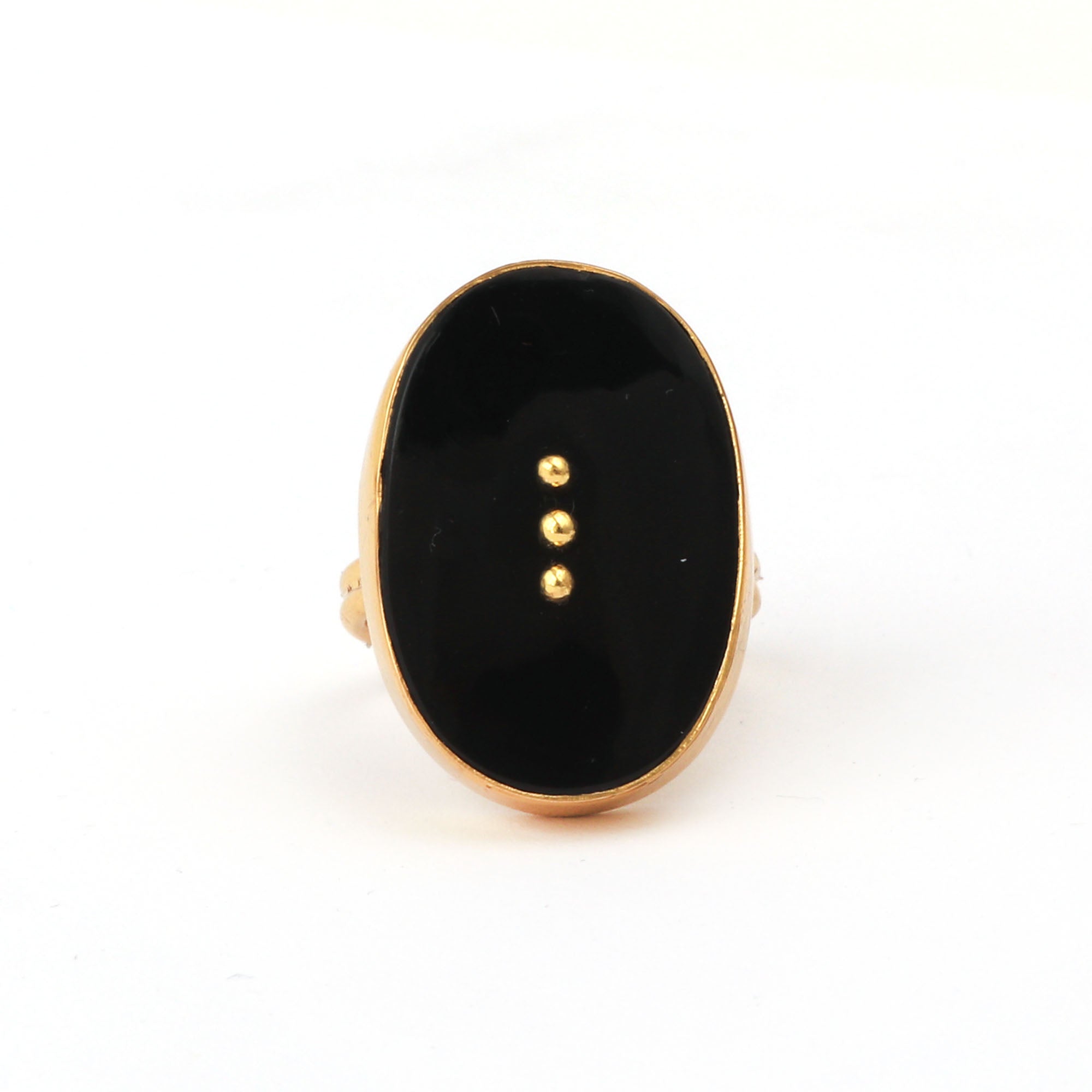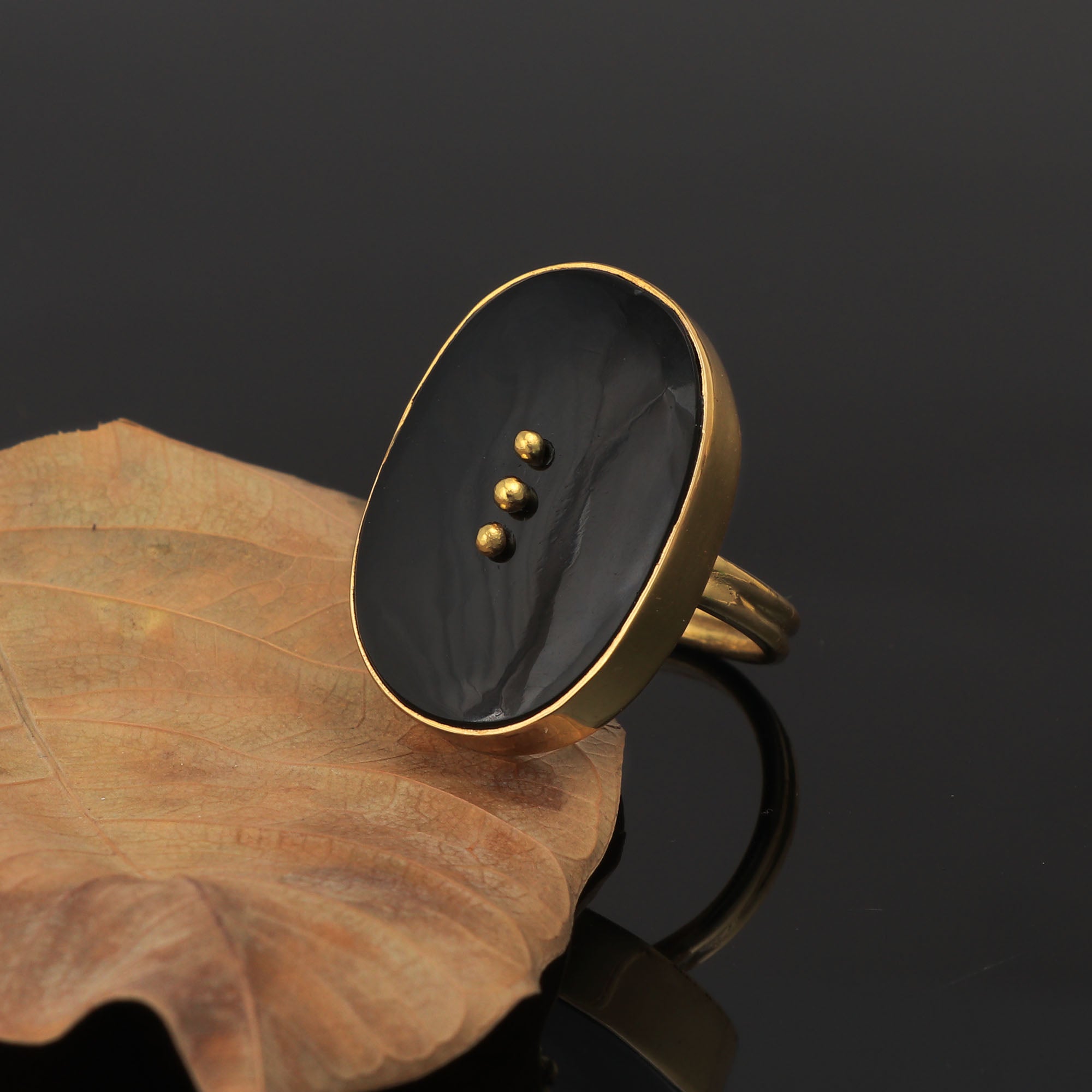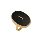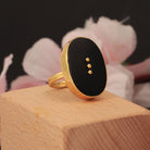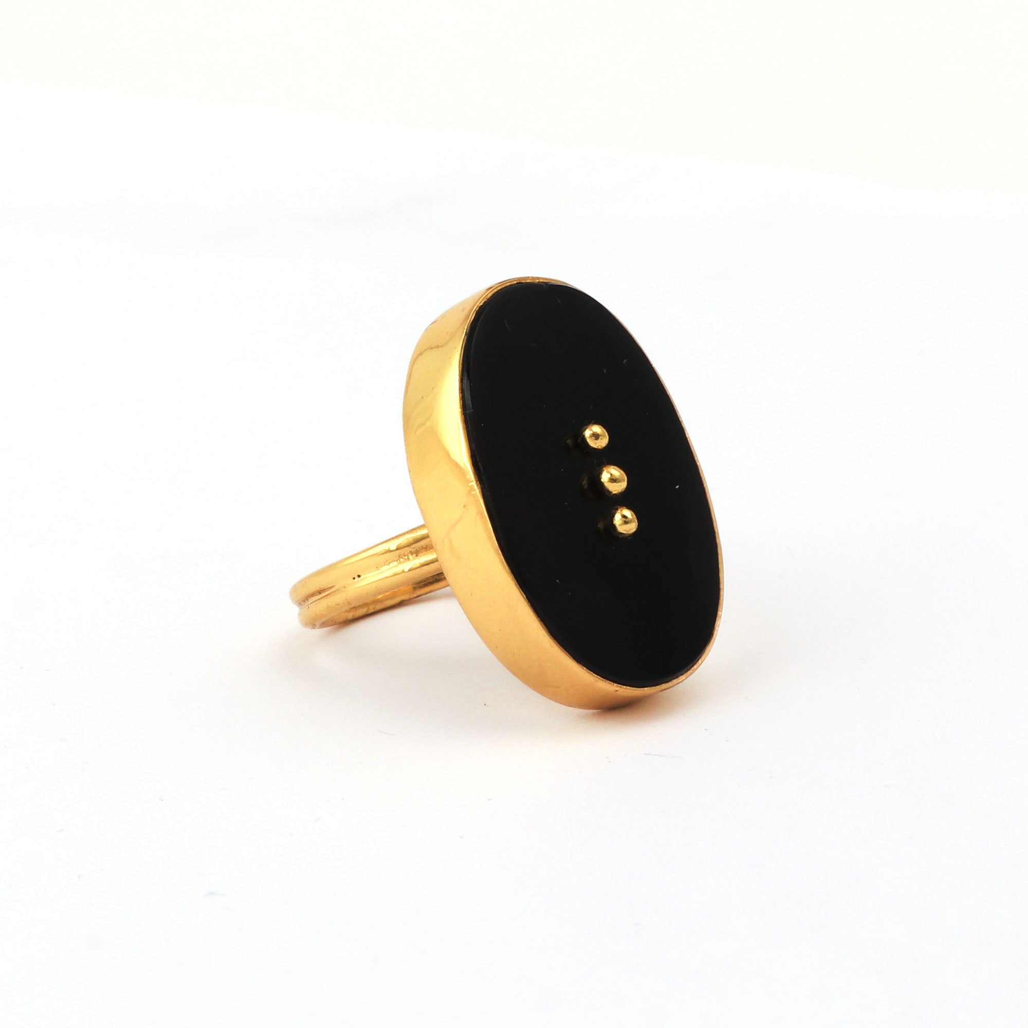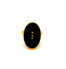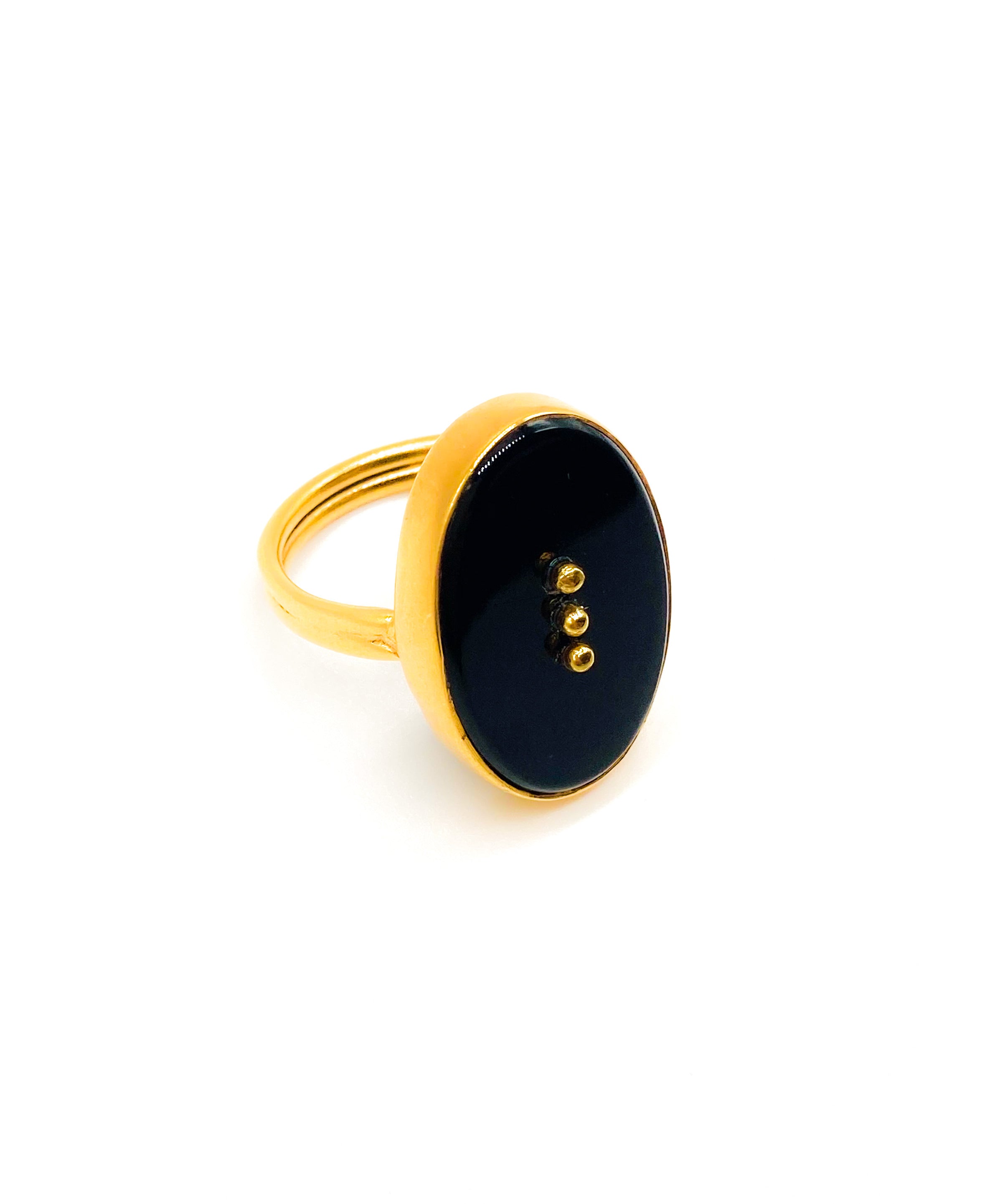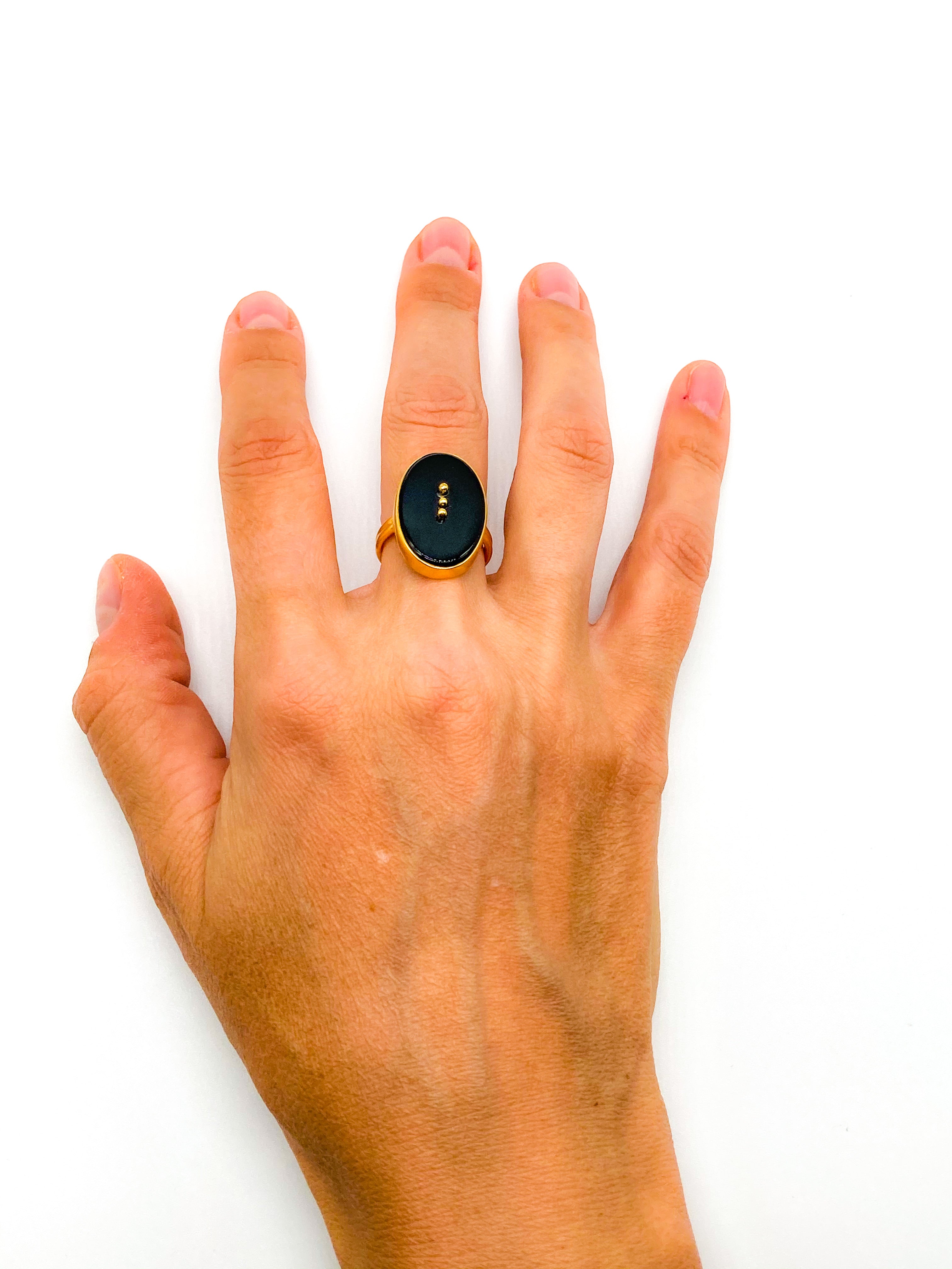 An oval cabochon cut Black Onyx gemstone with 3 gold 1mm beads inlaid in the center to represent 3 generations of family. Handmade with LOVE.