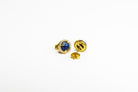 A 6mm Cabochon Lapis Lazuli Gemstone held in 18k gold vermeil, haloed by 1mm Zirconians. Total diameter of stud is 9mm.