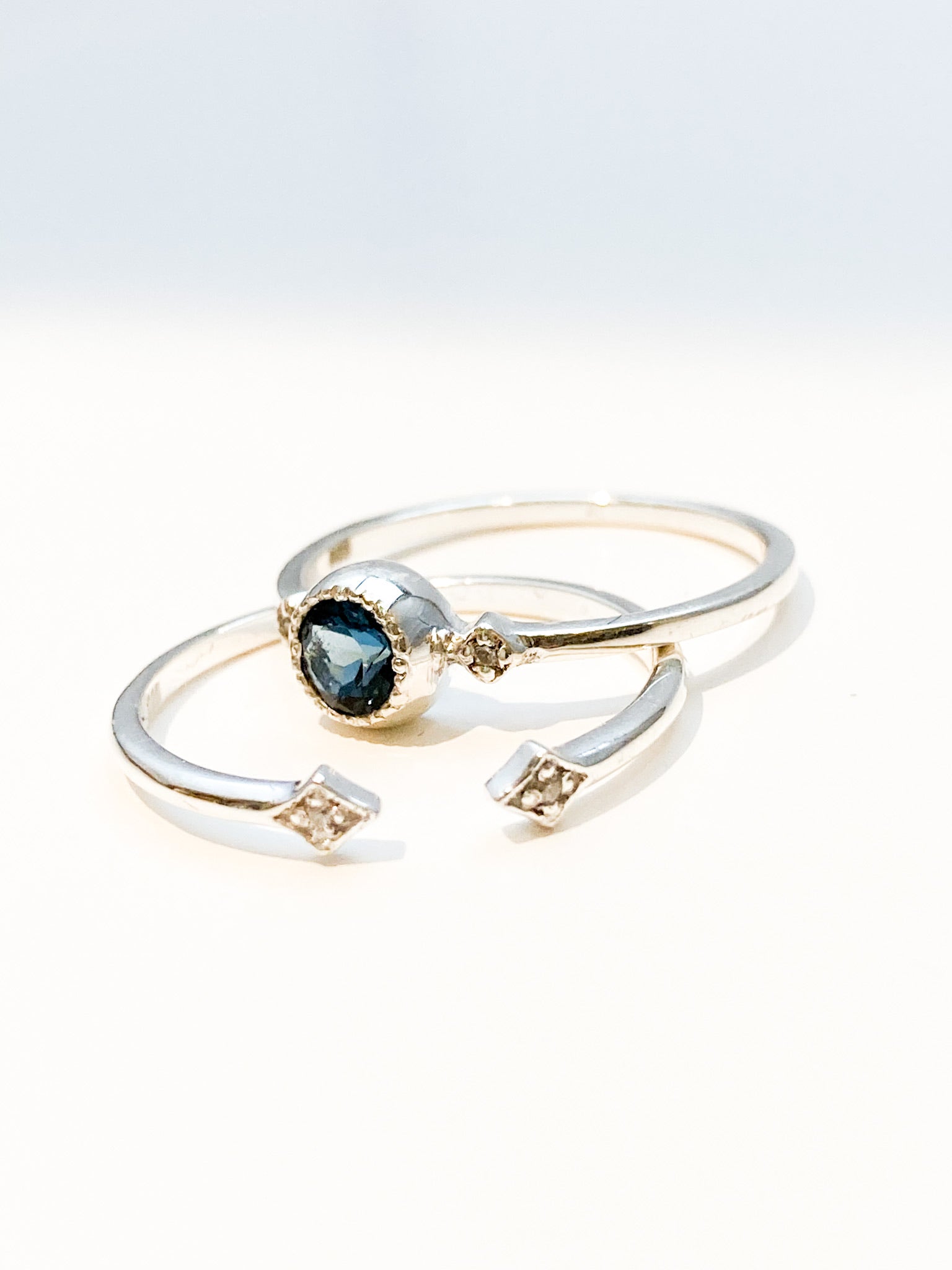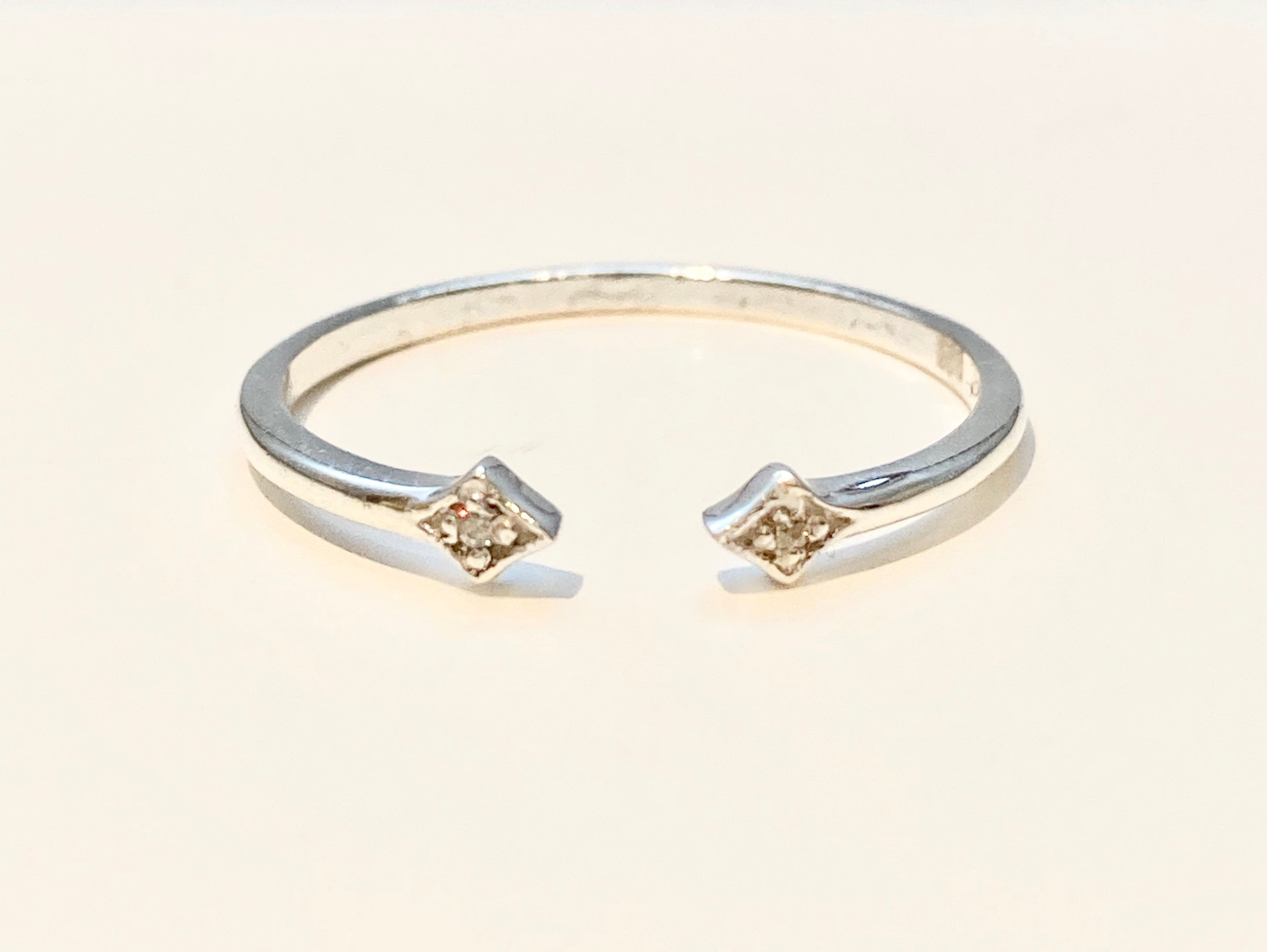Open set stacking ring, 2 Zirconians meeting in center. Due to its setting, the Open Heart ring pairs gorgeously with others!