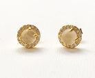 Mini Rose quartz gemstones wrapped in zirconians. Set in 18k gold plated sterling silver, precious metals excellent for sensitive ears! Perfect for that everyday piece that transitions seamlessly from day to night.
