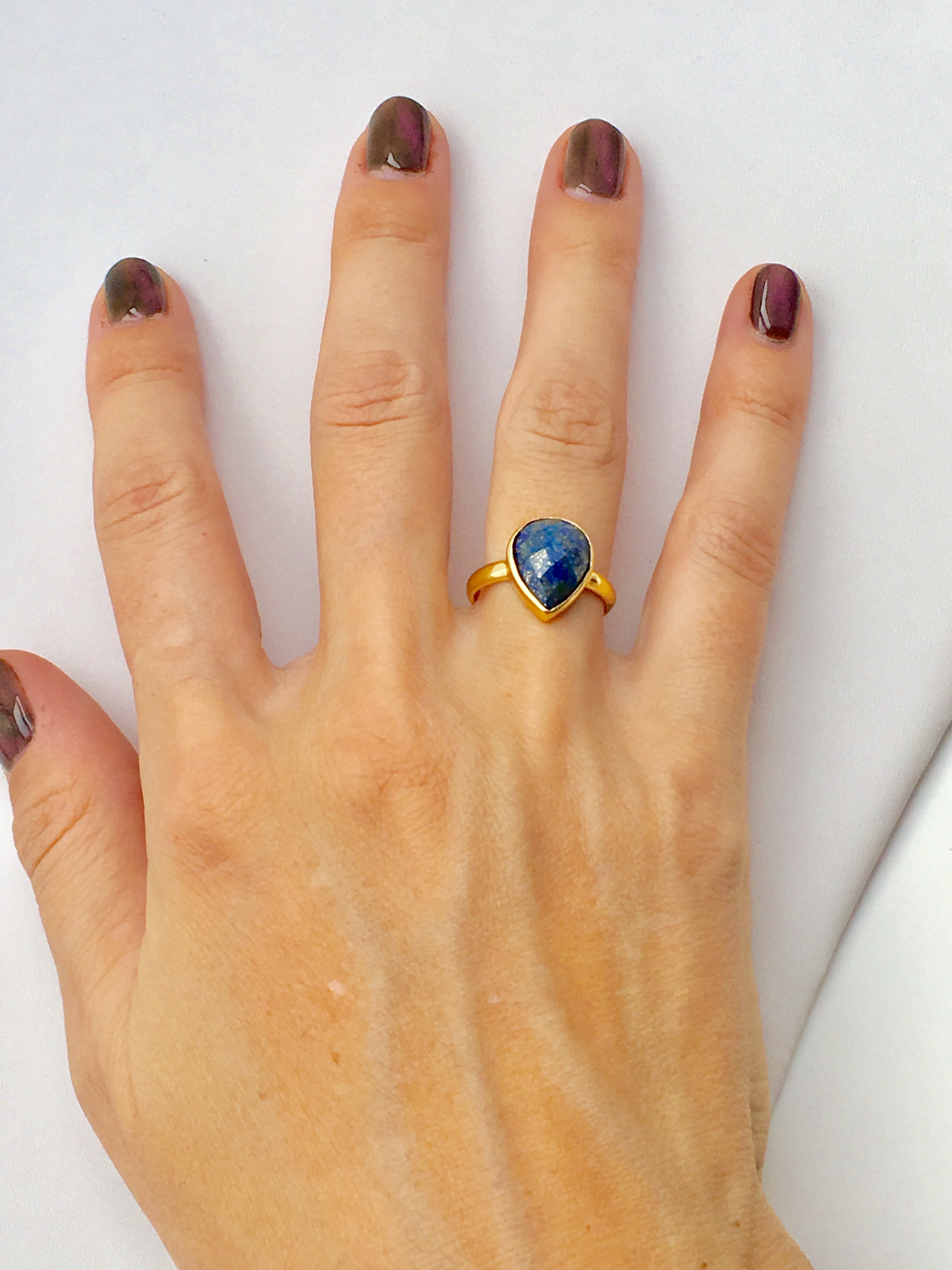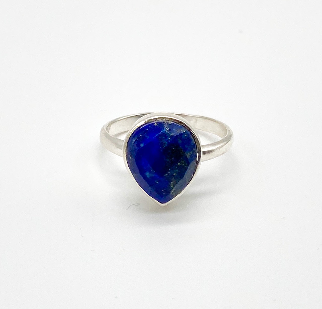 A pear cut Lapis Lazuli gemstone, bezel set in sterling silver. Balancing strength and beauty, the Anvil Ring adds depth to your collection.