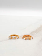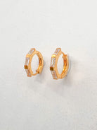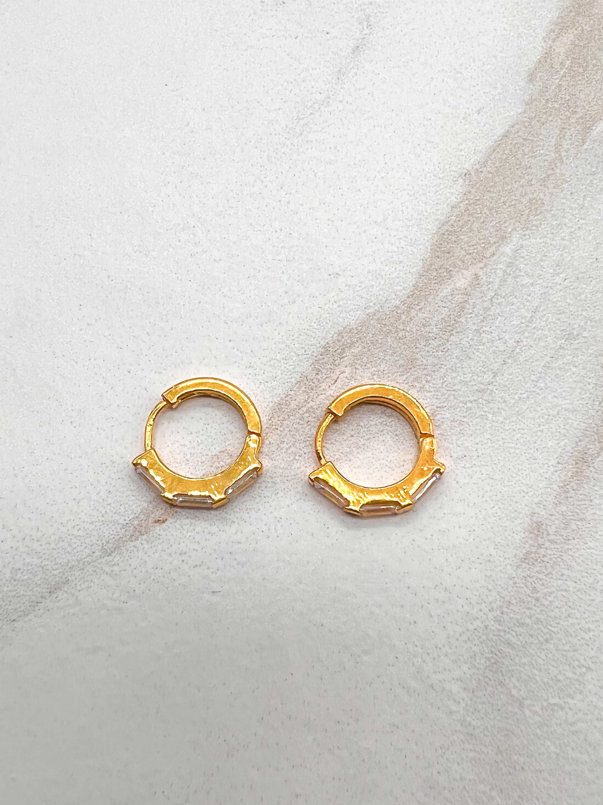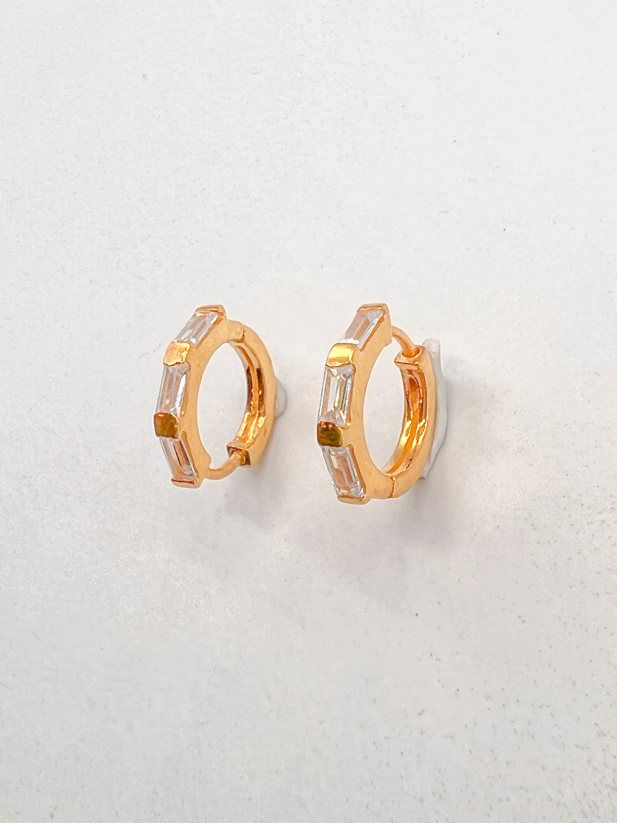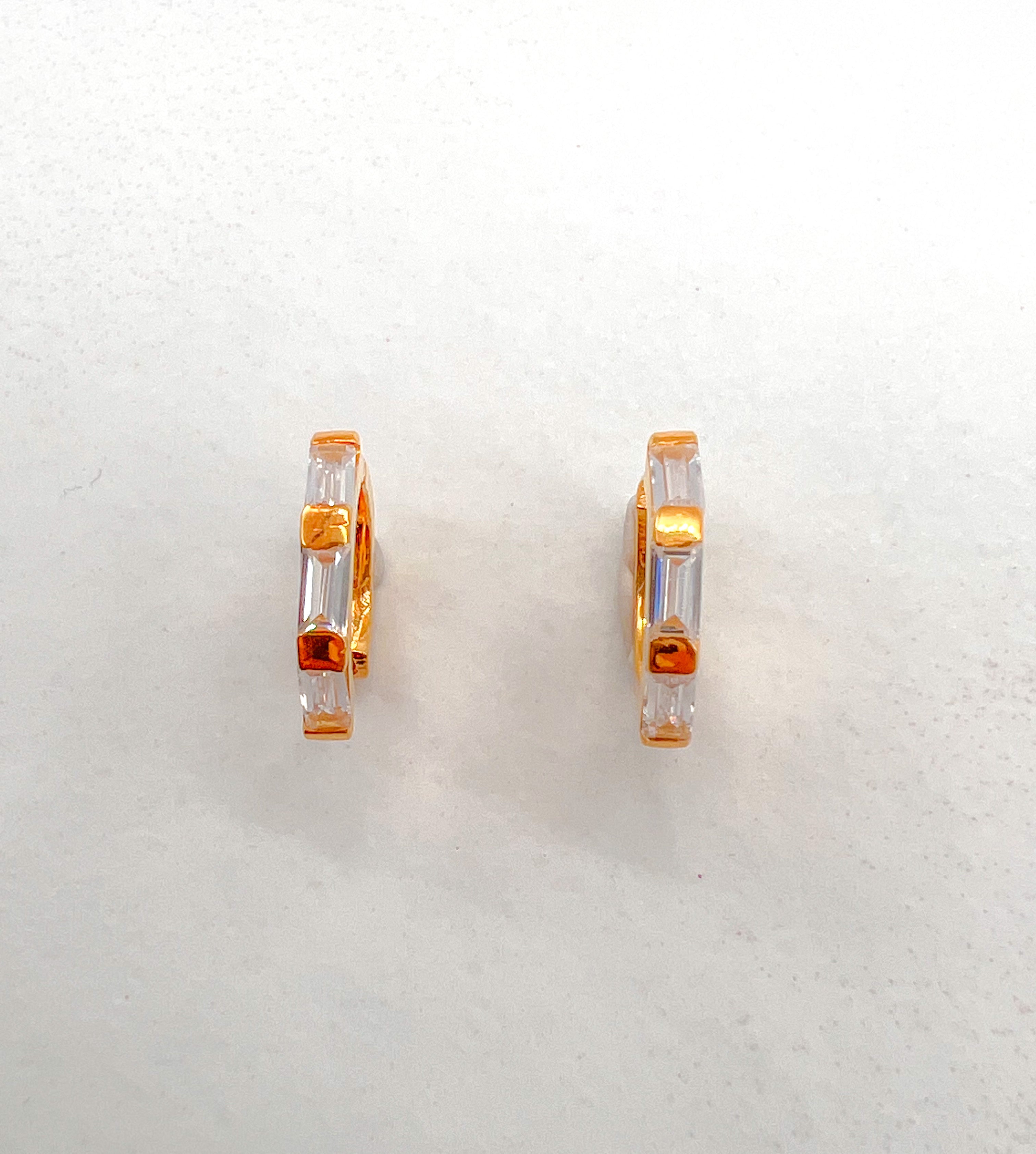 Small huggie earrings with baguette cut white topaz gemstones