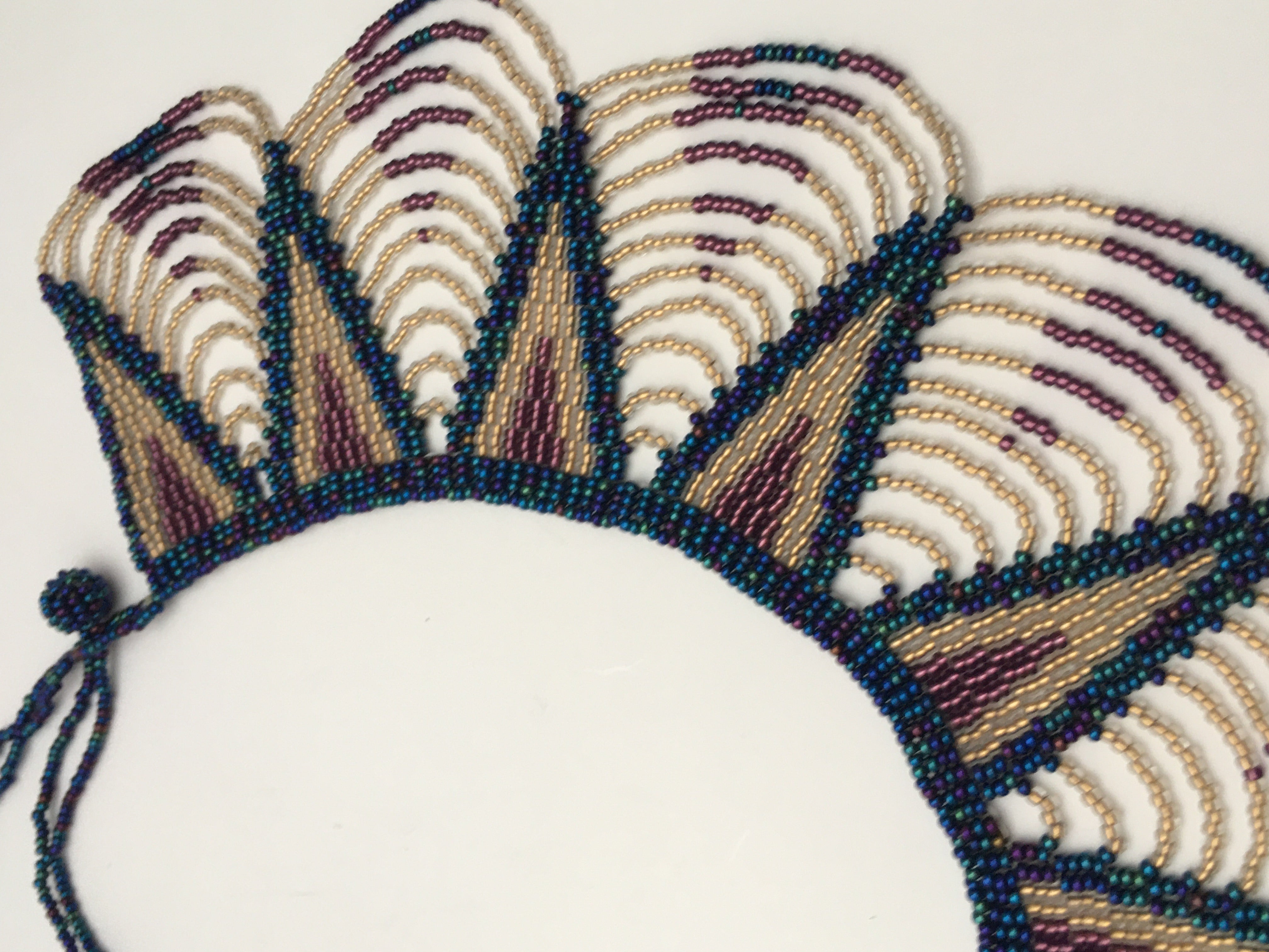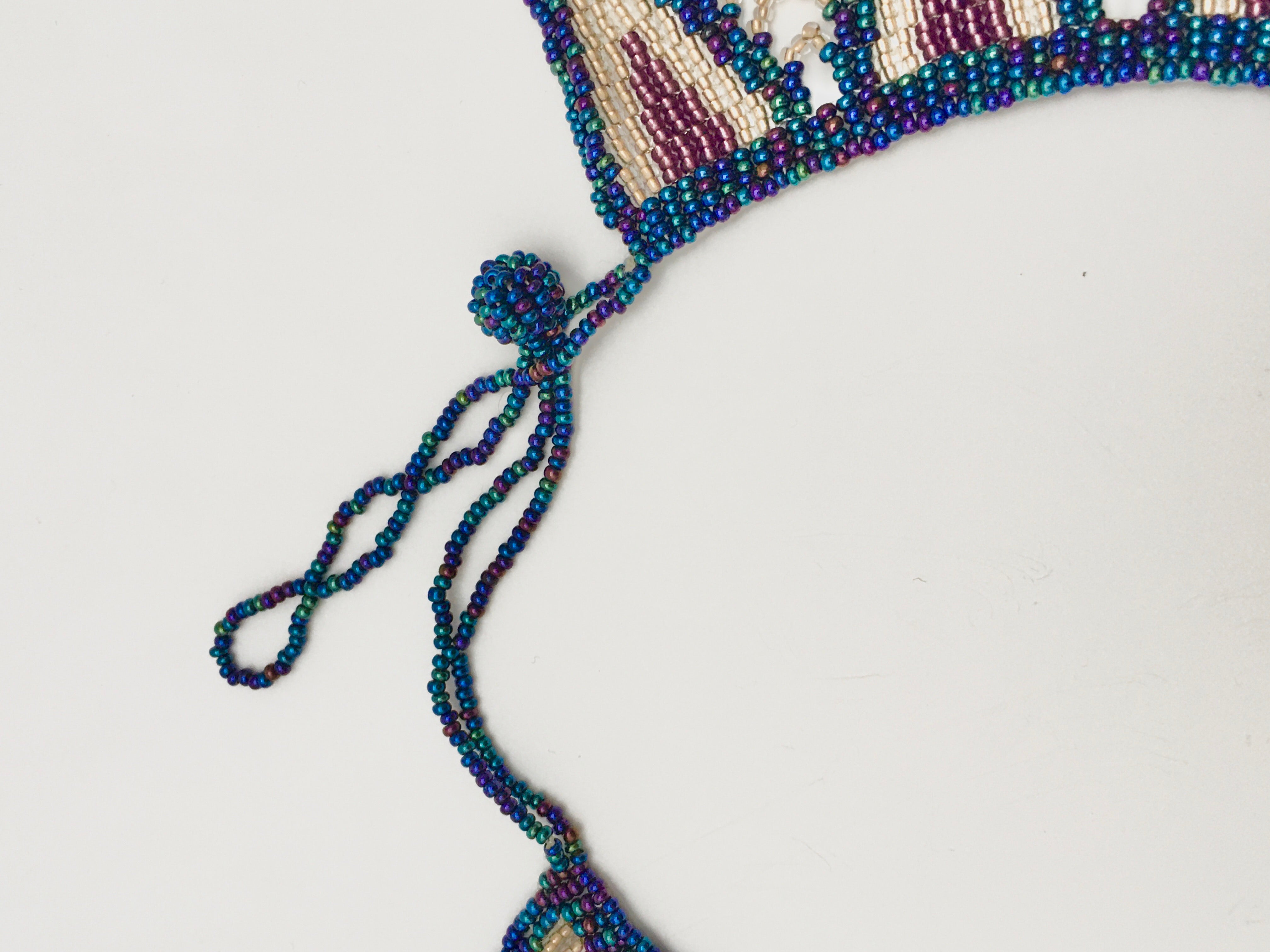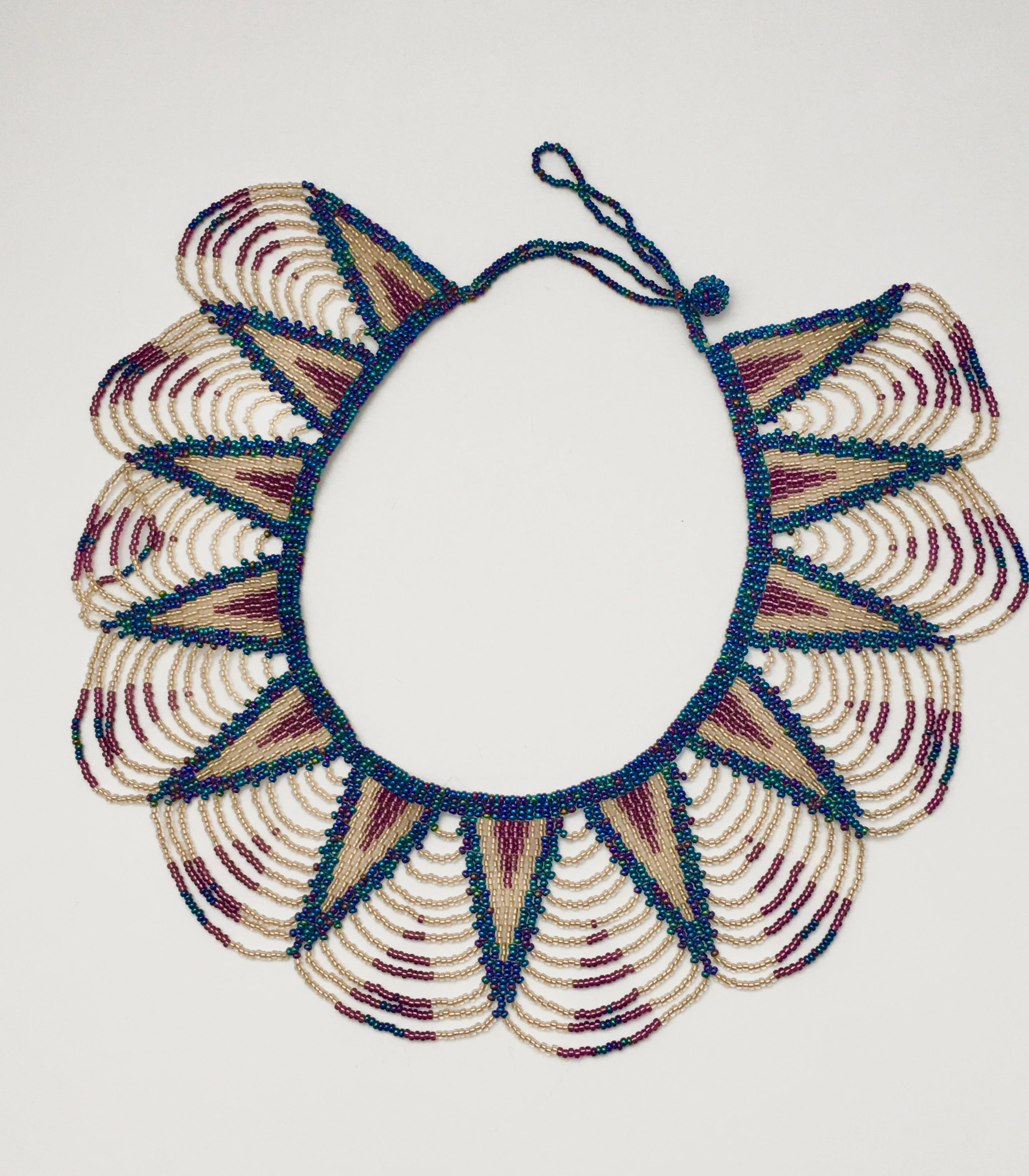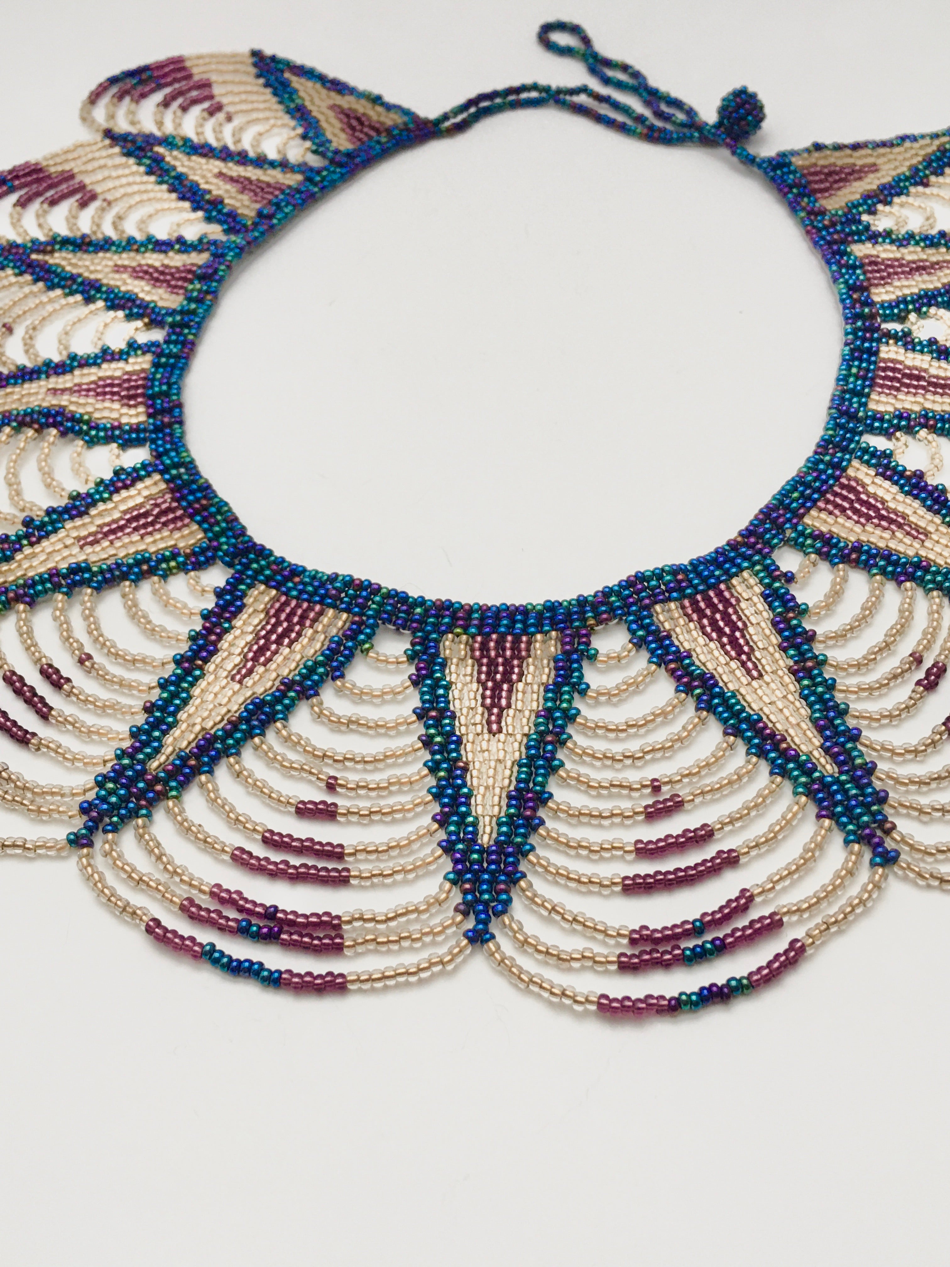 Beautifully beaded bib necklace, in complementary navy and lilac purple colors. Such a unique and inspiring piece, wears gorgeously with open neck tanks as well as simple sweaters, to take any outfit to another level.
