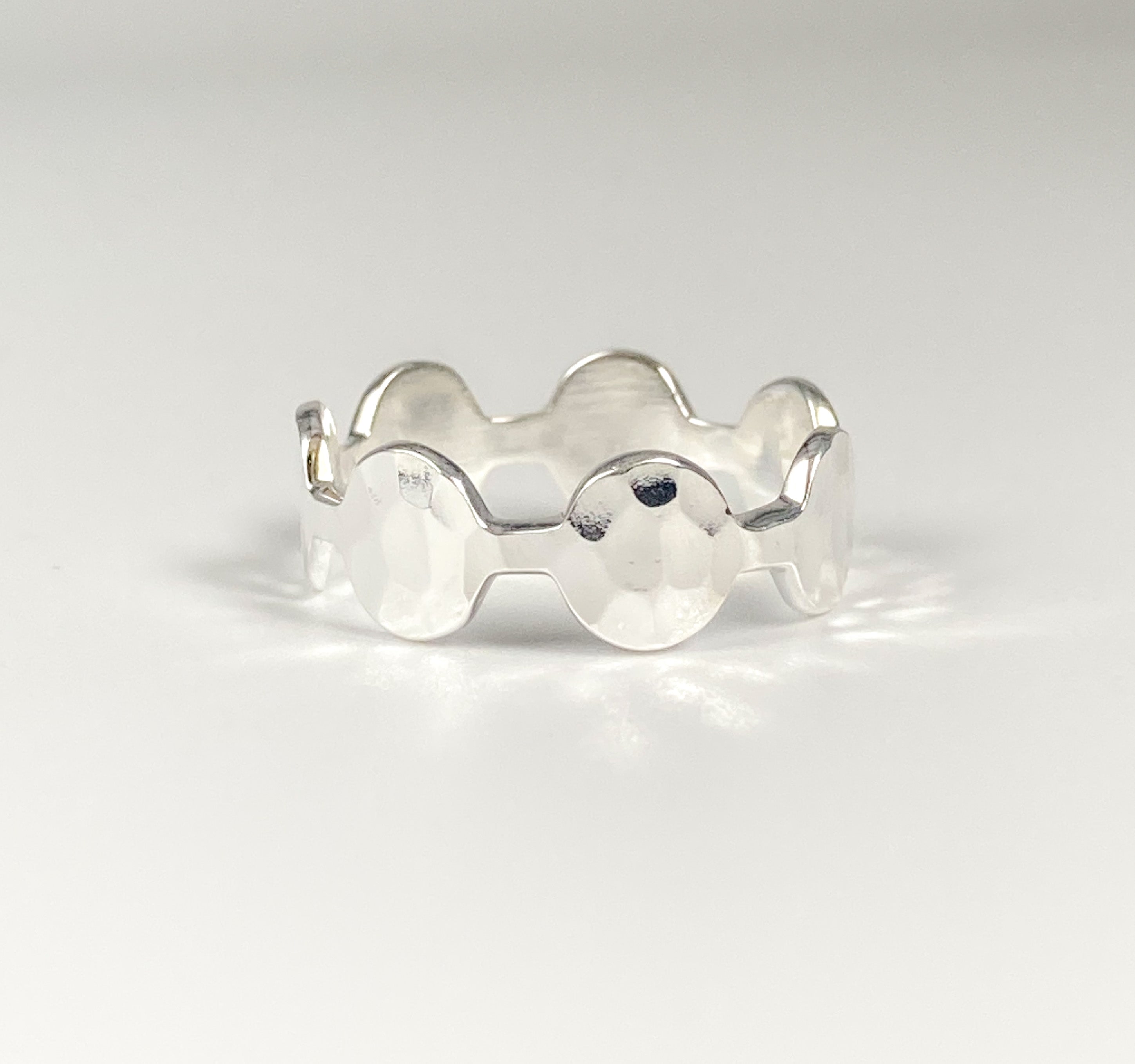 Circular design ring with hammered finish over metal. Small minimal ring designed as a signet ring, but wears beautifully as a midi or on any other finger!