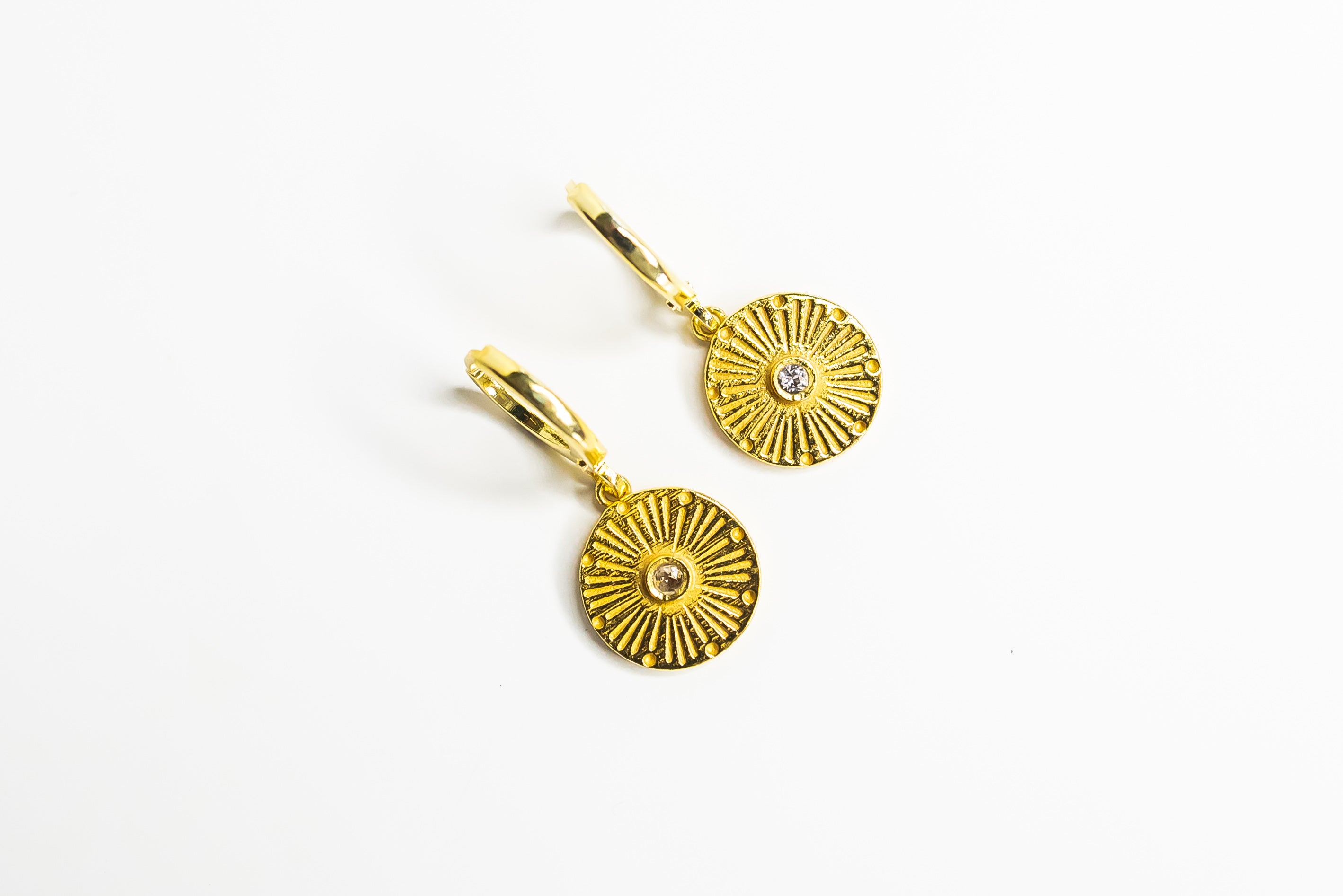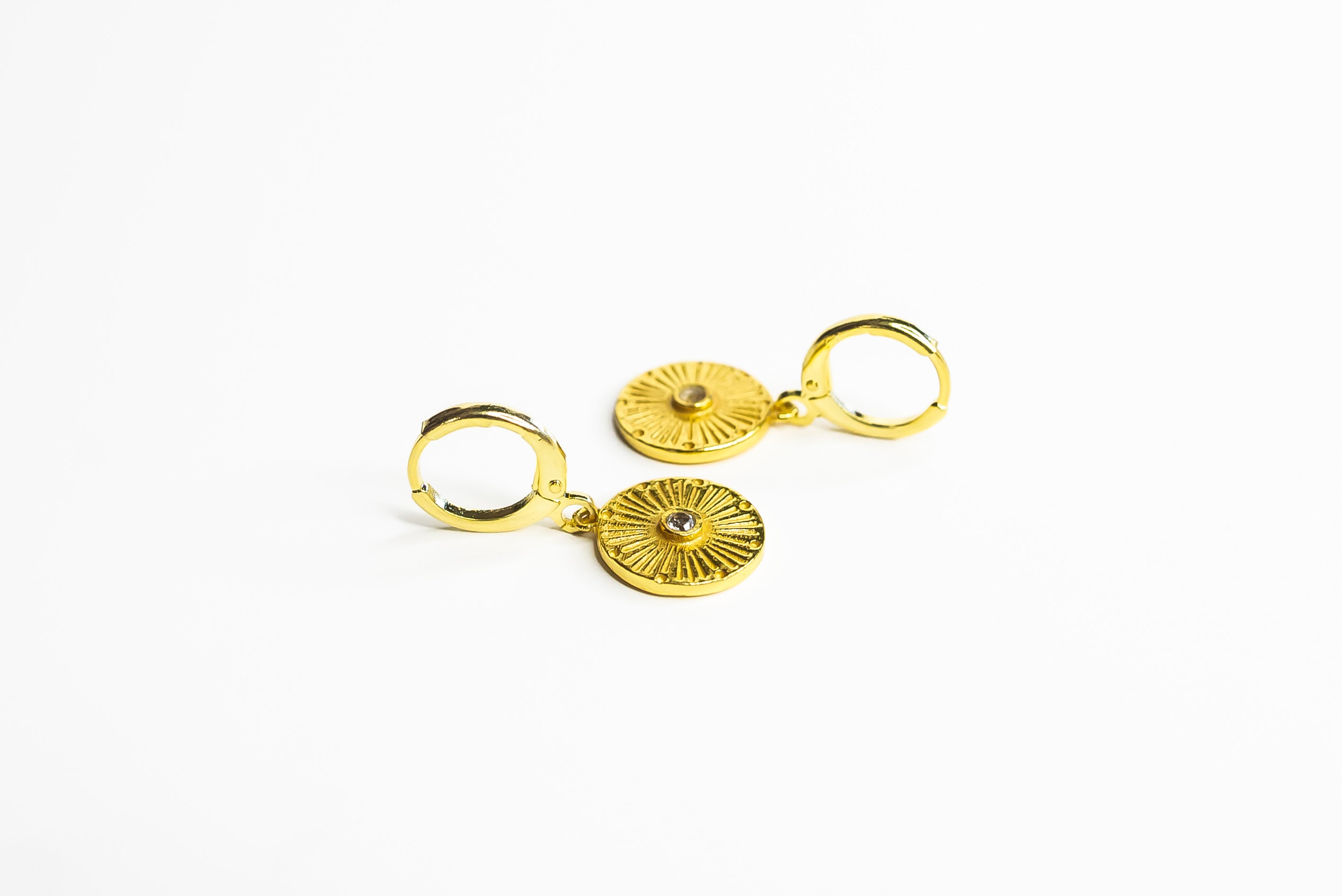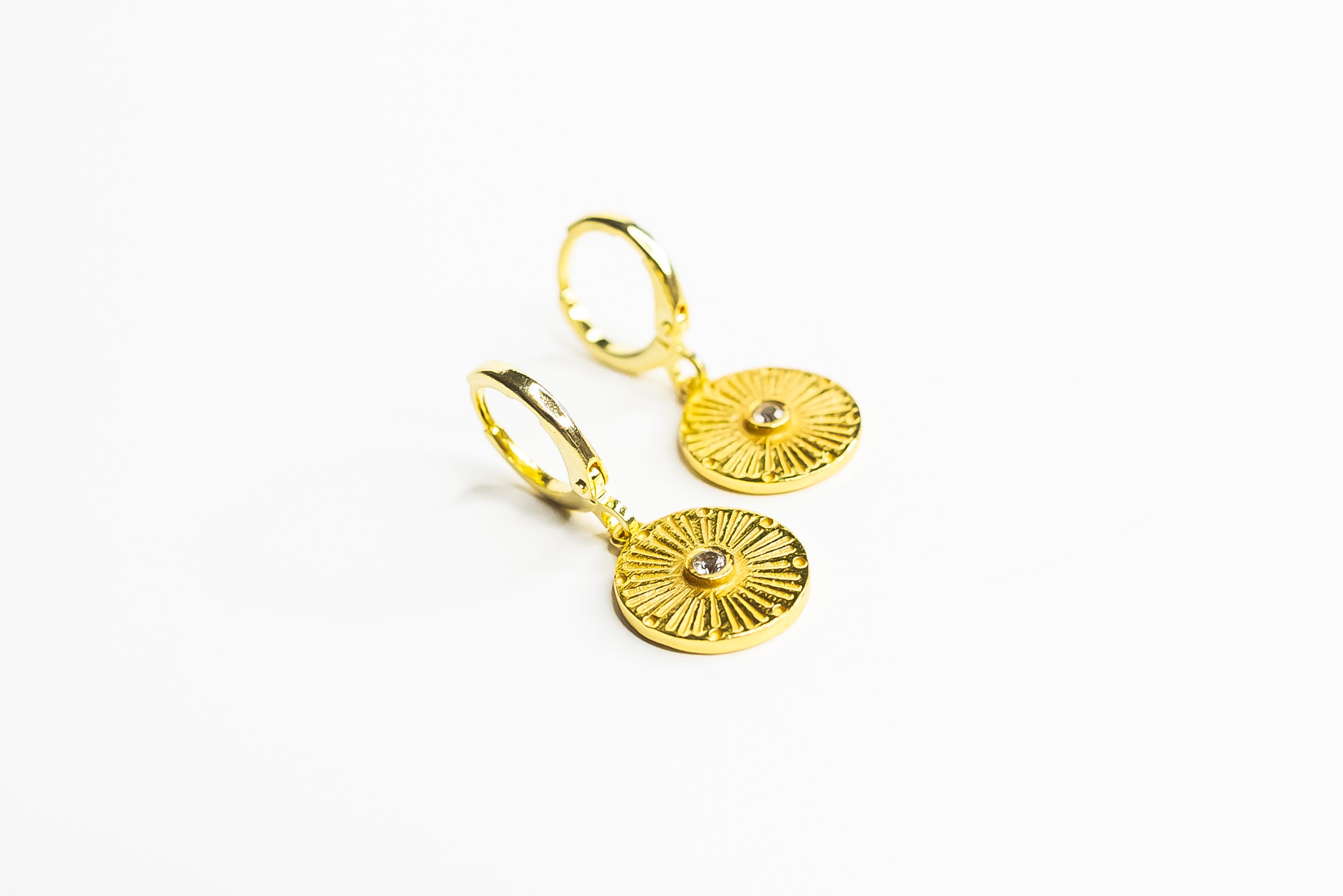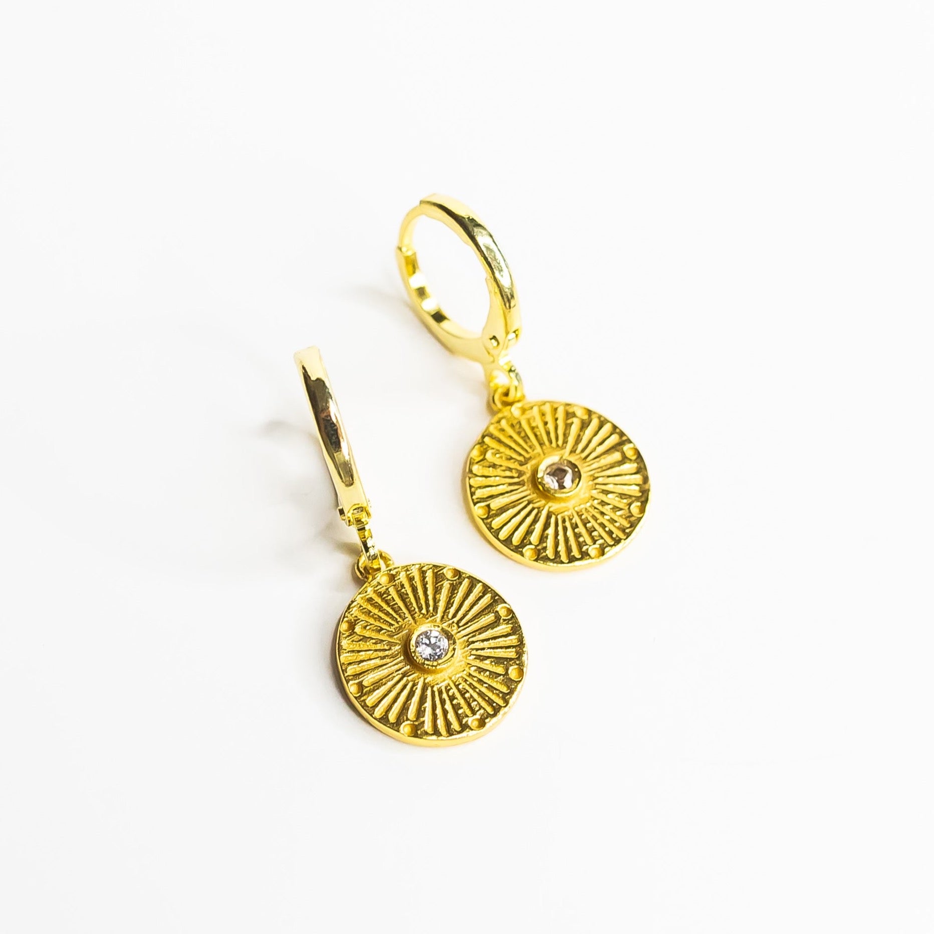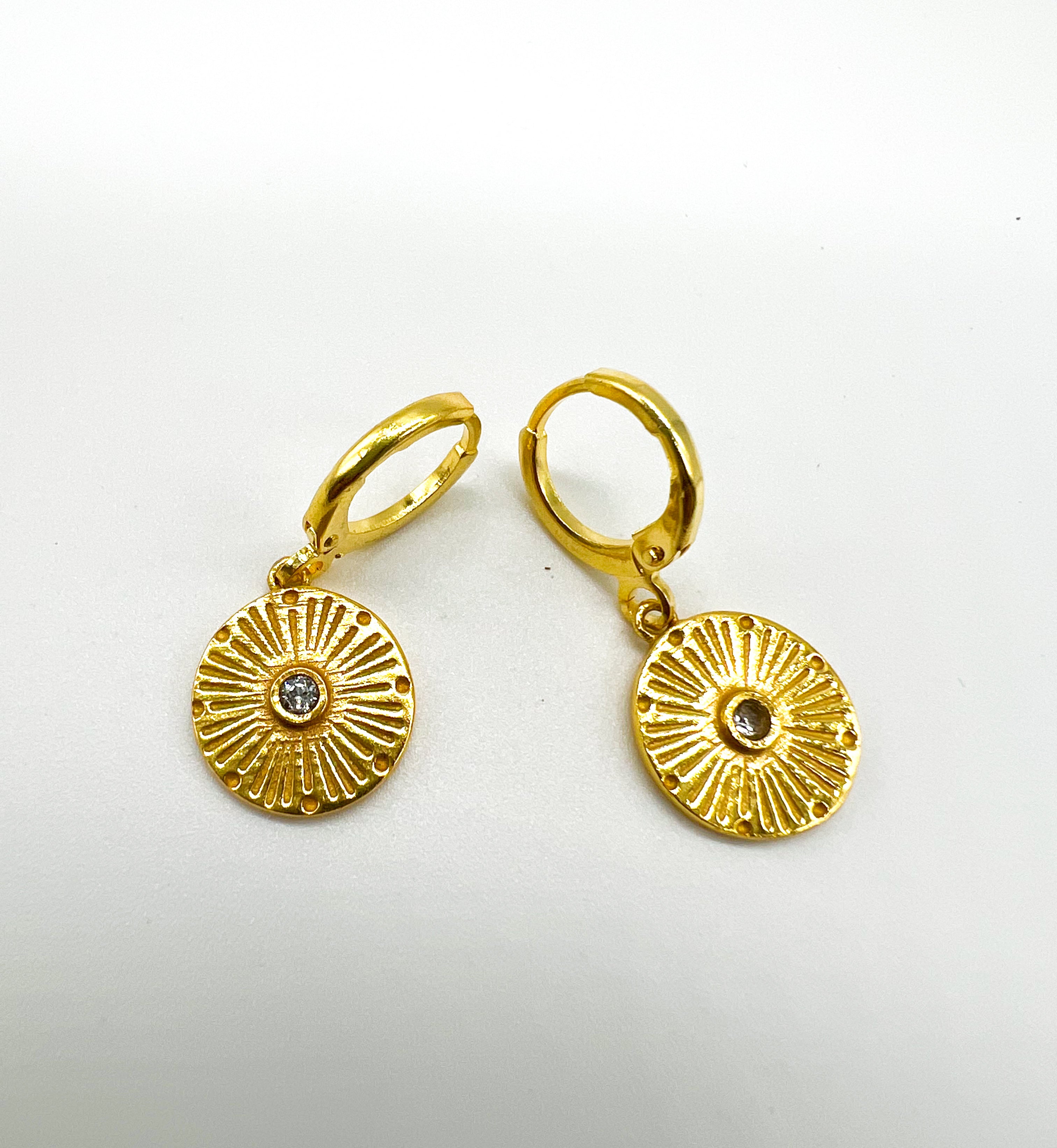Small round medallion inspired to Be a Light, share love in the world. Huggie earrings, light and easy to use! Sleep and swim approved!